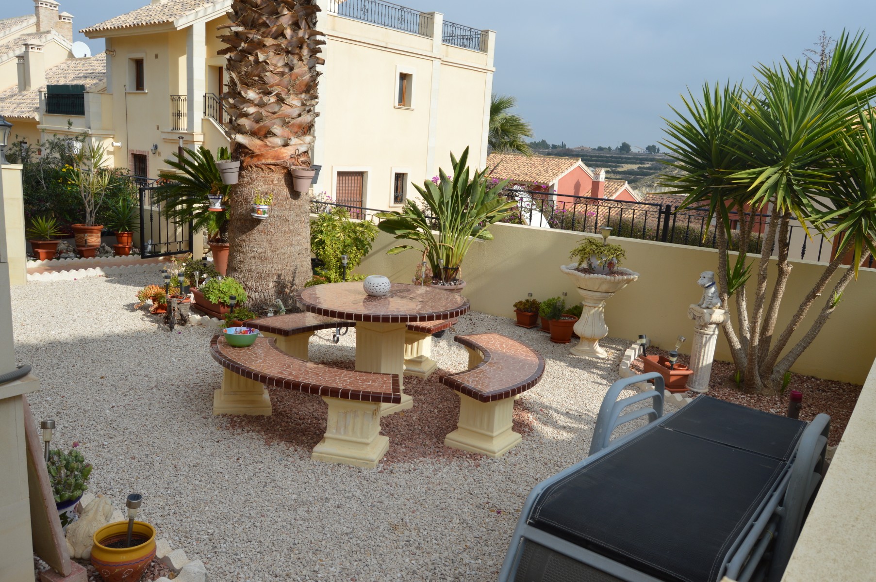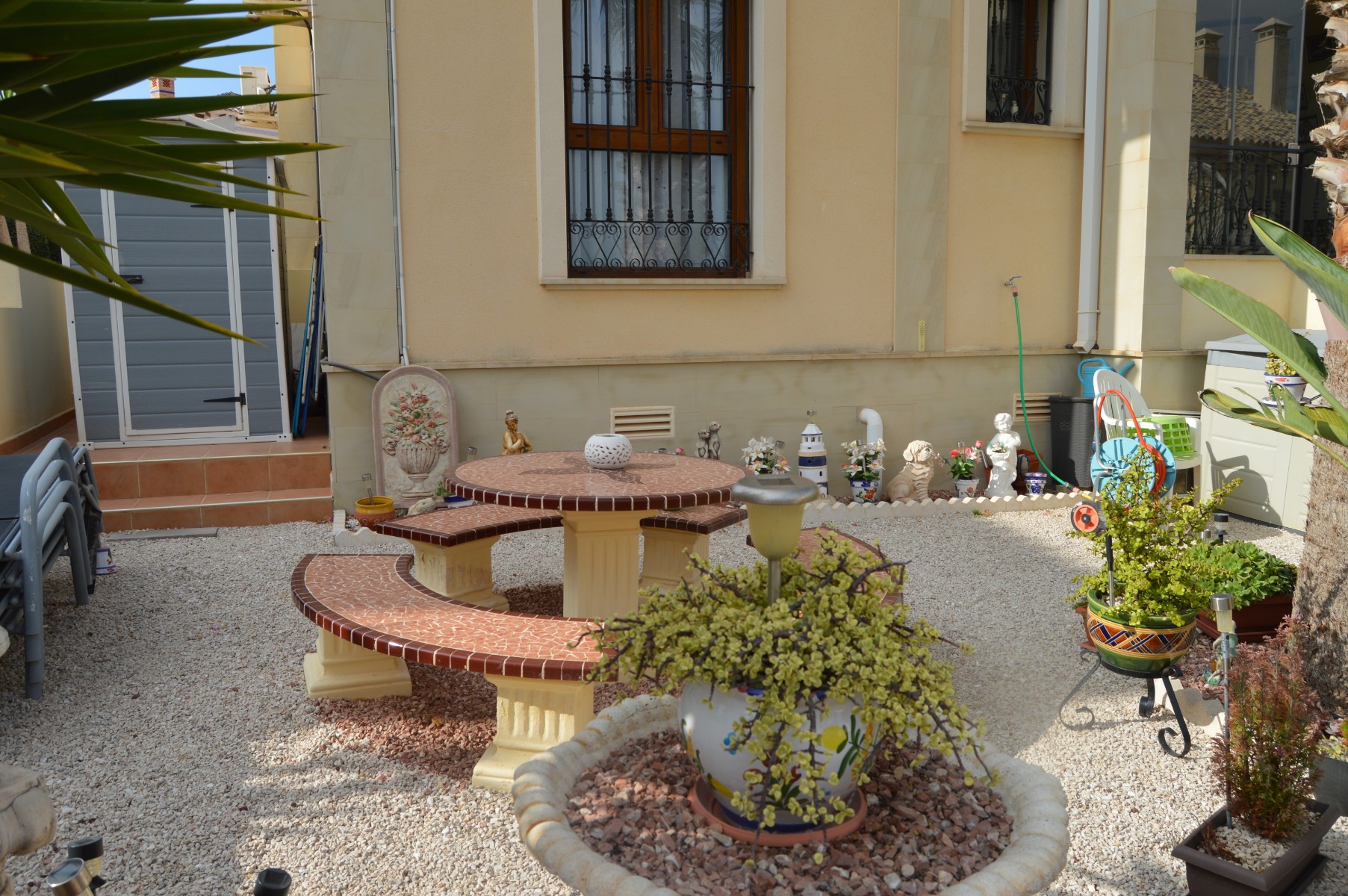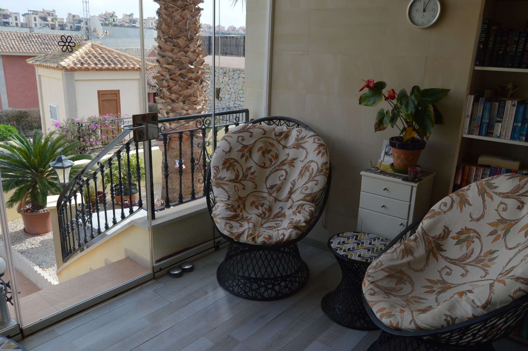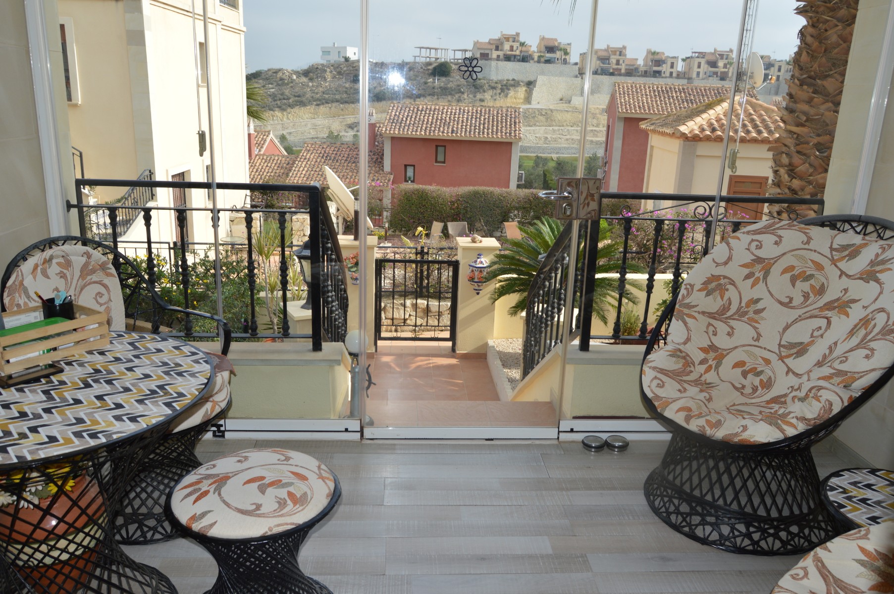 This lovely well mainted ground floor apartment is located in the very sought after 5* La finca golf urbanization , very centrally located in the Vega Baja area.The apartment benefits of a large corner plot and a west facing position . The current owners have kept it in great condition and it is ready to move in. The property consists : As you go in there is a utility room to your right perfect for storing goods and all sorts of stuff out of sight,then to your right there is a well fitted kitchen with a hatch window onto the open plan living / dining space . As you go into the living area, the 2 double bedrooms are located to your right and also a guest bathroom , (master bedroom en suite ). Off the living room through the rear of the property you will find the cozy glazed-in terrace with glass courtains looking into the lovely landscaped garden which comes with a shed. The garden is larger than usual as it ocuppies a corner site . There is a communal pool with amazing views within few meters of the apartmentThe communal fee is €600 per year and the SUMA tax €280The property is within walking distacne to the commercial center and 20 min walk to Algorfa village.Alicante airport 40 minb by car and the Guardamar beaches under 15 min