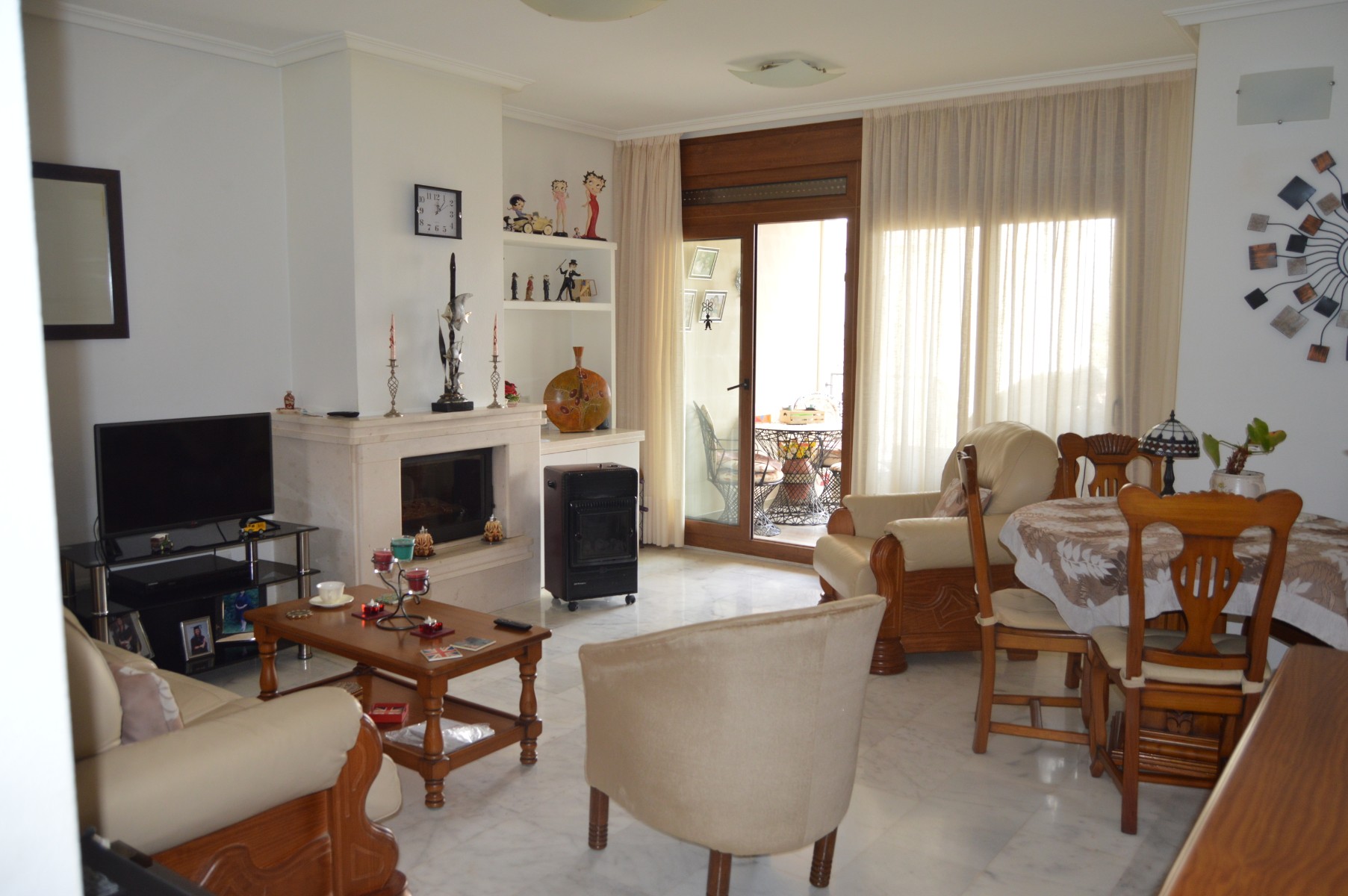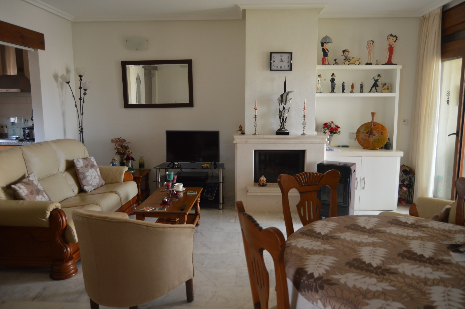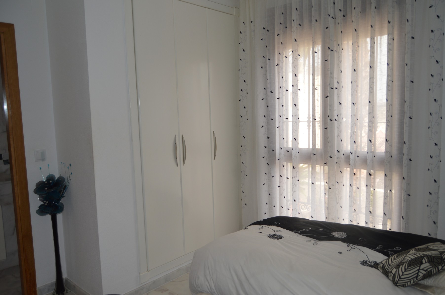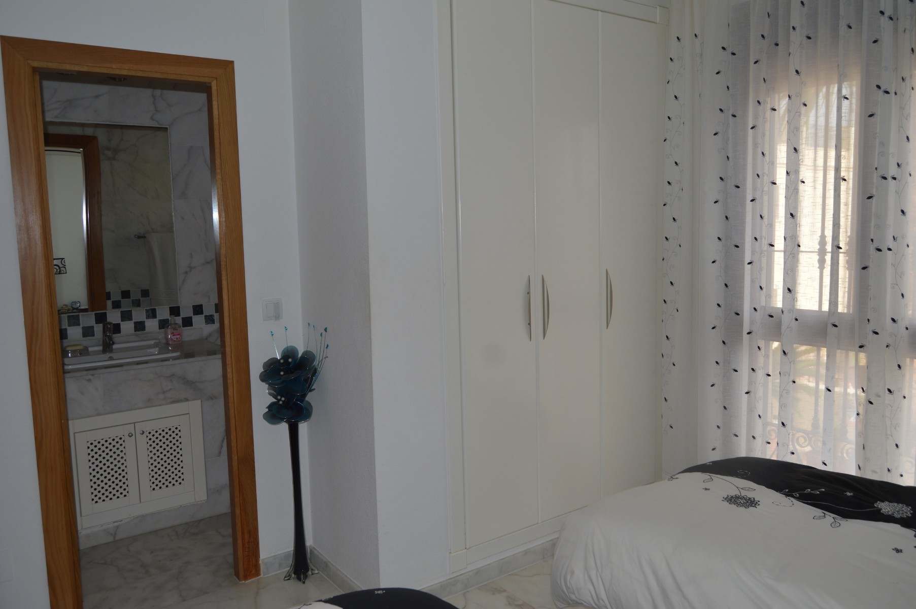 This lovely well mainted ground floor apartment is located in the very sought after 5* La finca golf urbanization , very centrally located in the Vega Baja area.The apartment benefits of a large corner plot and a west facing position . The current owners have kept it in great condition and it is ready to move in. The property consists : As you go in there is a utility room to your right perfect for storing goods and all sorts of stuff out of sight,then to your right there is a well fitted kitchen with a hatch window onto the open plan living / dining space . As you go into the living area, the 2 double bedrooms are located to your right and also a guest bathroom , (master bedroom en suite ). Off the living room through the rear of the property you will find the cozy glazed-in terrace with glass courtains looking into the lovely landscaped garden which comes with a shed. The garden is larger than usual as it ocuppies a corner site . There is a communal pool with amazing views within few meters of the apartmentThe communal fee is €600 per year and the SUMA tax €280The property is within walking distacne to the commercial center and 20 min walk to Algorfa village.Alicante airport 40 minb by car and the Guardamar beaches under 15 min