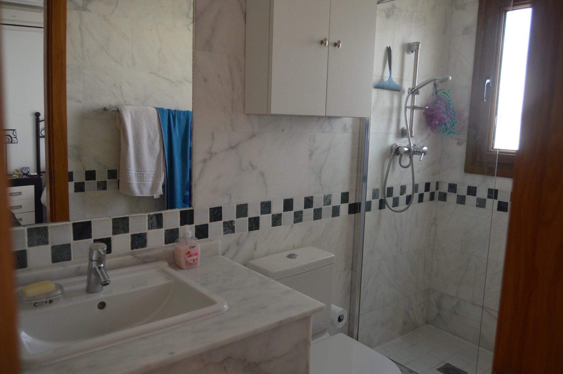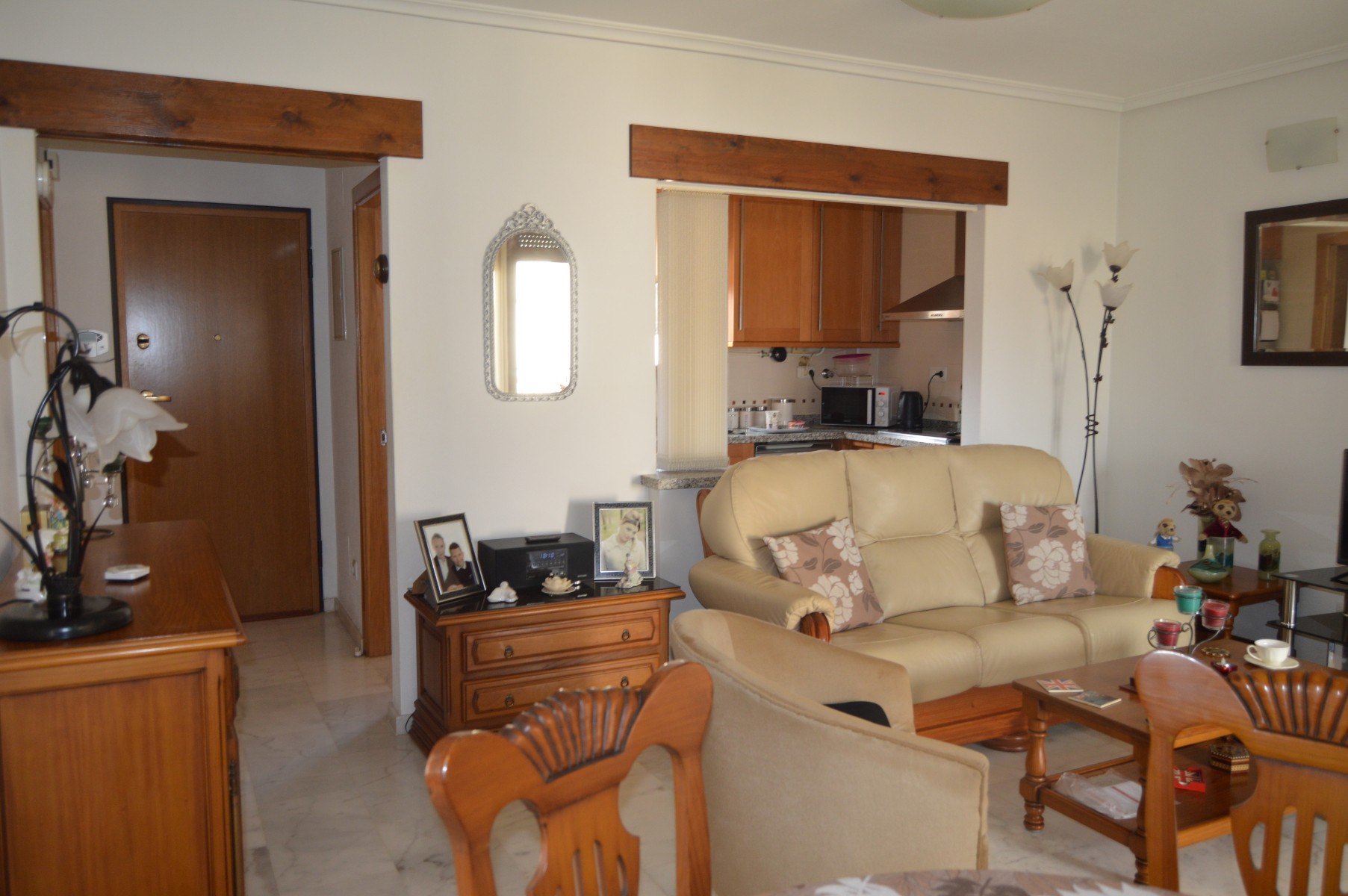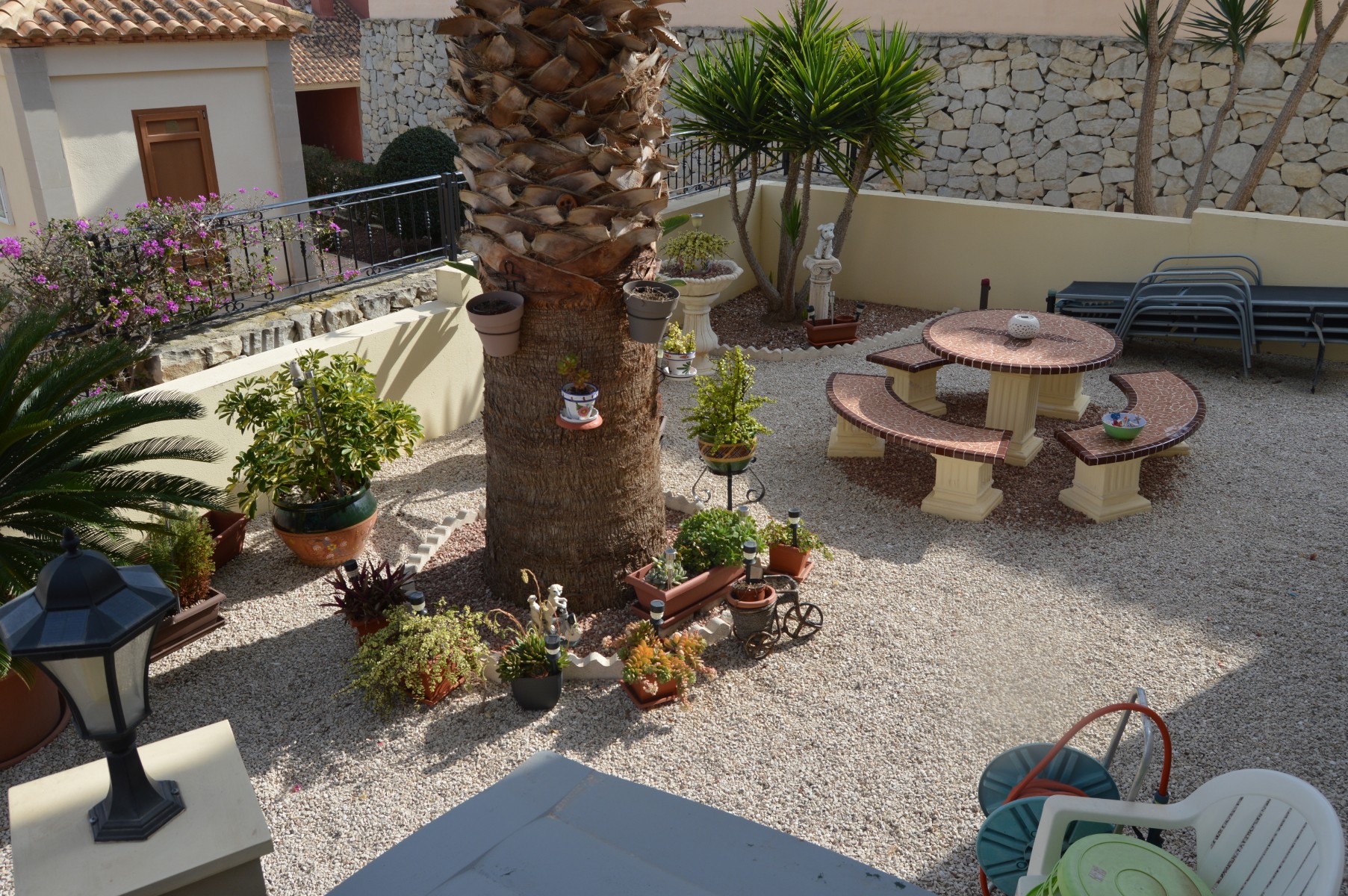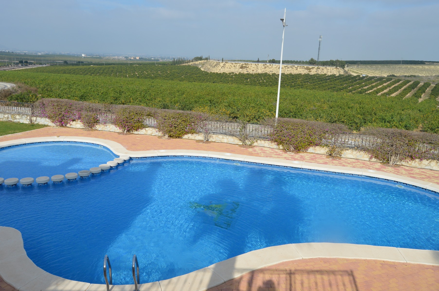 This lovely well mainted ground floor apartment is located in the very sought after 5* La finca golf urbanization , very centrally located in the Vega Baja area.The apartment benefits of a large corner plot and a west facing position . The current owners have kept it in great condition and it is ready to move in. The property consists : As you go in there is a utility room to your right perfect for storing goods and all sorts of stuff out of sight,then to your right there is a well fitted kitchen with a hatch window onto the open plan living / dining space . As you go into the living area, the 2 double bedrooms are located to your right and also a guest bathroom , (master bedroom en suite ). Off the living room through the rear of the property you will find the cozy glazed-in terrace with glass courtains looking into the lovely landscaped garden which comes with a shed. The garden is larger than usual as it ocuppies a corner site . There is a communal pool with amazing views within few meters of the apartmentThe communal fee is €600 per year and the SUMA tax €280The property is within walking distacne to the commercial center and 20 min walk to Algorfa village.Alicante airport 40 minb by car and the Guardamar beaches under 15 min