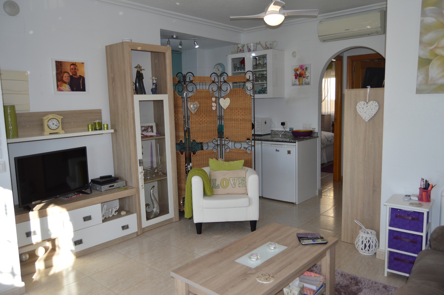 The property benefits from remote control ceiling fans, air conditioning, awning in the terrace and comes partially furnished. Another benefit is no community fees and the yearly SUMA bill (property tax) being only €100, therefore there is no communal pool but the village has a Municipal pool 500 meters away that opens all summer and it is free for spanish residents and very low cost for the rest)