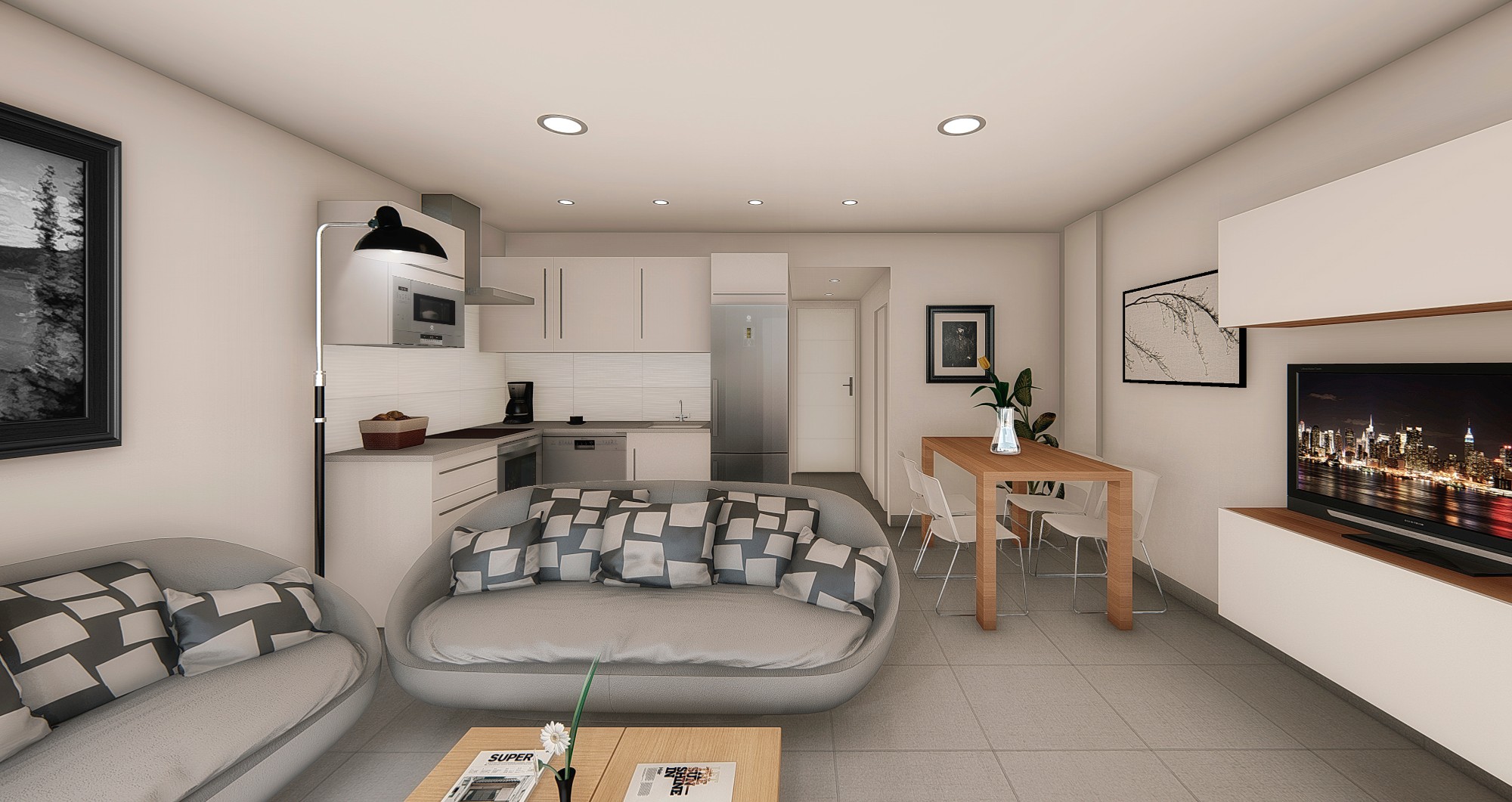Levansur 3 is an exclusive development of 20 apartments situated only a 10 minute walk from the seafront in Lo Pagan where you will find a lovely promenade, marina and all of the amenities including supermarket, pharmacy, bars, shops and a great selection of restaurants.These apartments are available on the ground floor with large terrace/garden or penthouse with terrace and rooftop solarium and each property includes fully fitted kitchen with appliances, LED lighting, private parking, outdoor kitchens, pre installation of hot/cold air conditioning and there is a lovely communal area with swimming pool.This luxurious penthouse apartment comprises of an open plan lounge with patio doors which lead out onto the terrace, a fully fitted kitchen with appliances including oven, hob, extractor, fridge/freezer, washing machine, dishwasher and microwave, a master bedroom with fitted wardrobes and en-suite, a further double bedroom also with fitted wardrobes and a fully fitted additional guest bathroom.