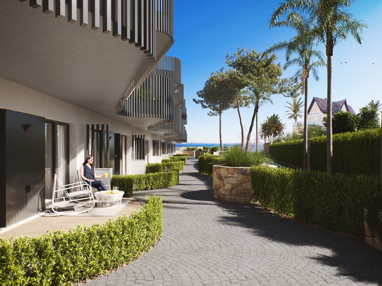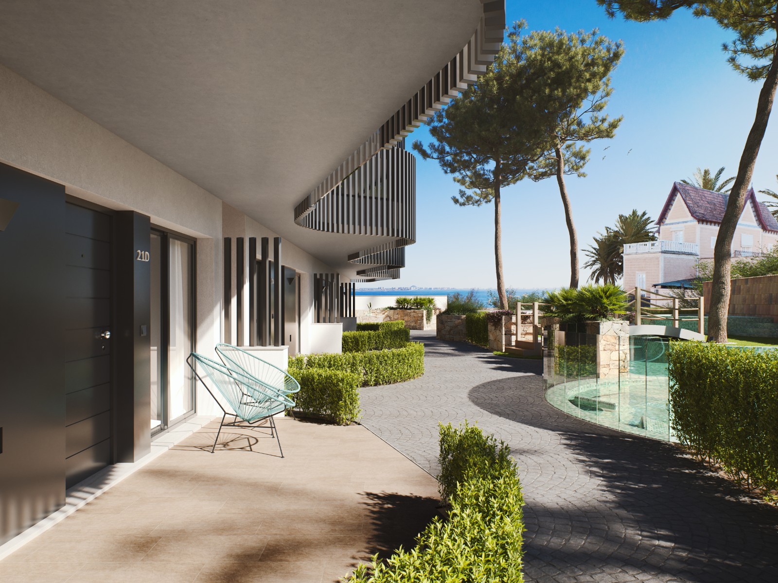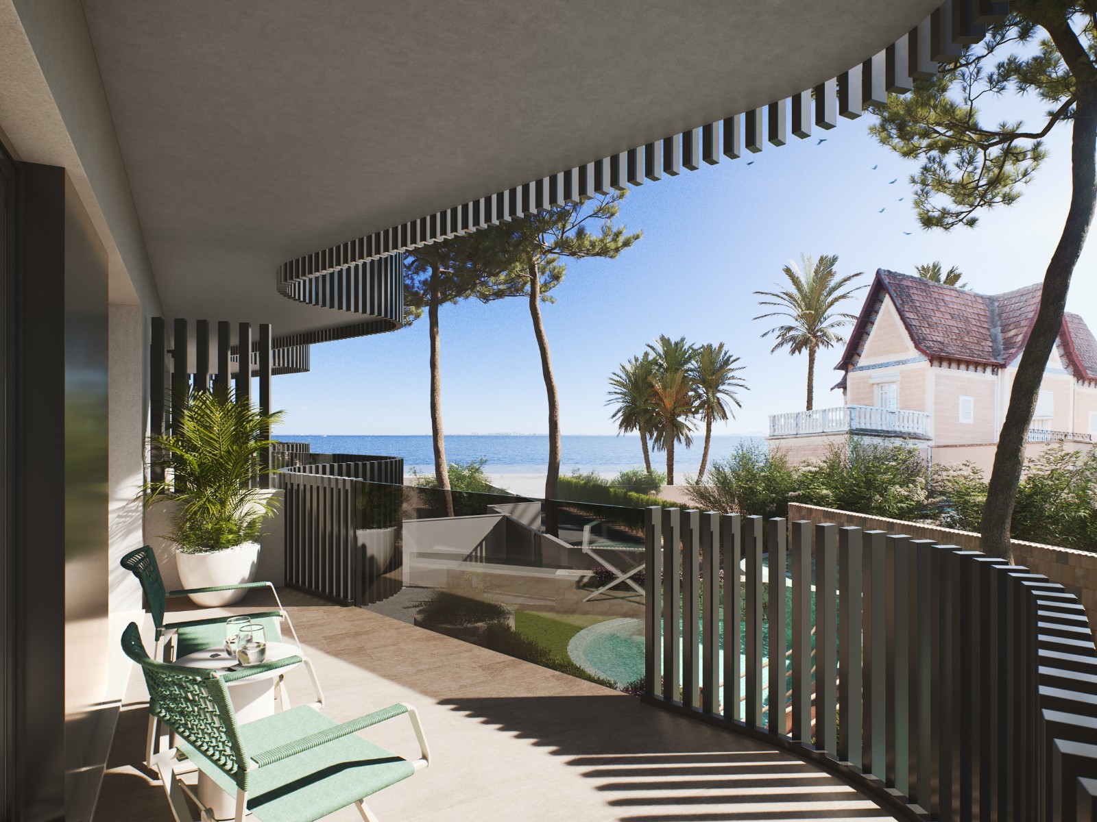 This exclusive development of 16 luxurious apartments is situated only 50 metres from the stunning Lo Pagan beach, a well established Spanish town which has a great selection of amenities including banks, pharmacies, supermarkets, shops, bars and restaurants. Marau beach is a gated complex with relaxing communal gardens with swimming pool, has a choice of ground floor with gardens or penthouse with rooftop solarium and secure underground parking is also included.Fourteen of these apartments are already sold… This ground floor apartment consists of an open plan lounge with patio doors which lead out into the garden and overlooks the gardens and swimming pool, a modern kitchen with fitted appliances including oven, hob, extractor, fridge/freezer and microwave, a master bedroom with fitted wardrobes, en-suite and patio doors which lead onto into the garden, a further double bedroom with fitted wardrobes and a fully fitted bathroom. There is a rear terrace which is accessed from the kitchen and the 2nd bedroom.