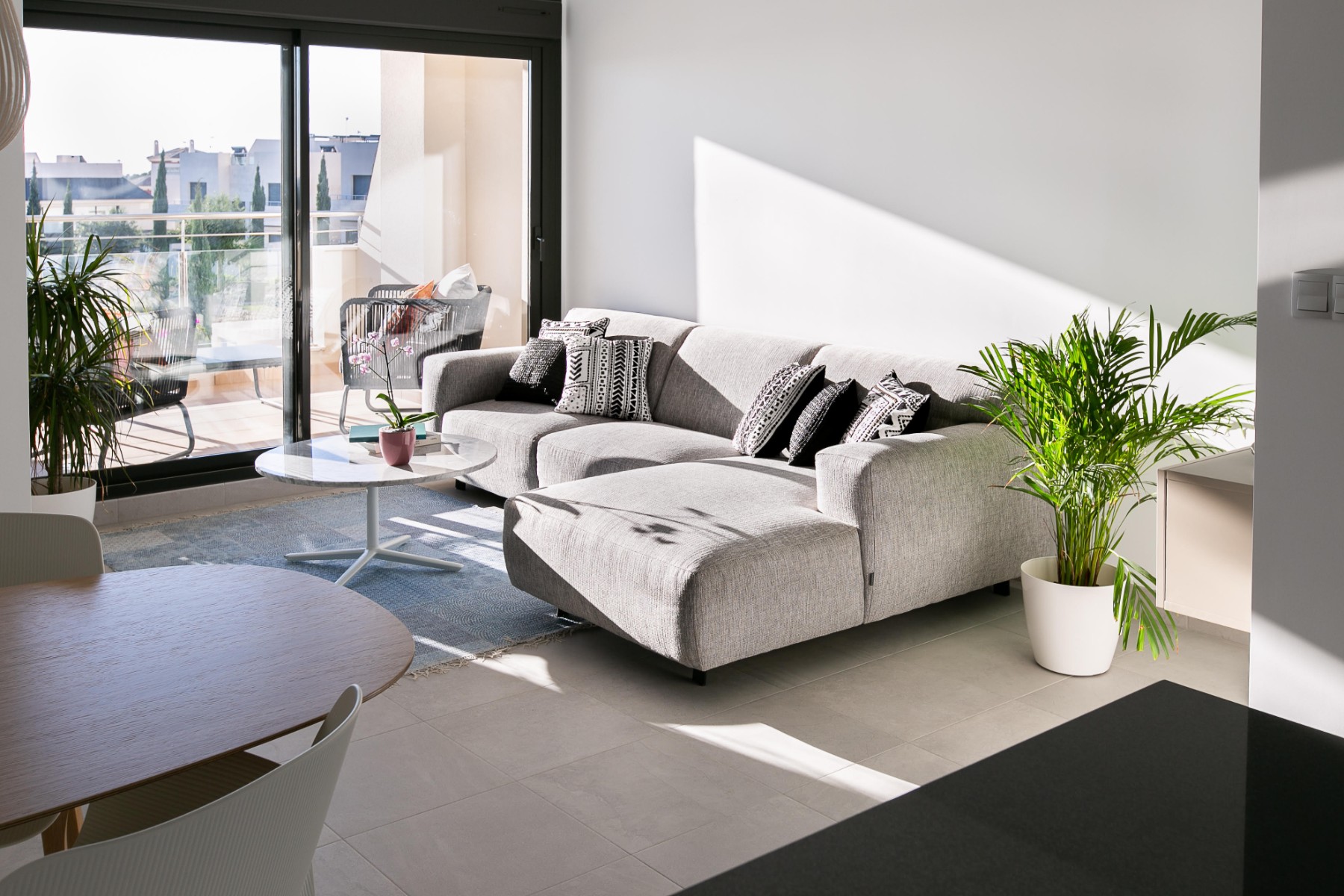 This luxurious development is situated in Los Dolses within walking distance from La Zenia boulevard, Villamartin plaza and Los Dolses commercial centre where you will find a host of amenities including supermarkets, pharmacies, bars, shops and a great selection of restaurants. This exclusive development has beautiful communal gardens, 2 swimming pools with waterfalls, children’s play park, lifts to all floors and secure under ground parking. There is a choice of having 2 or 3 bedroom apartments from the ground floor with garden, 1st or 2nd floor with terrace and penthouse with private rooftop solarium.