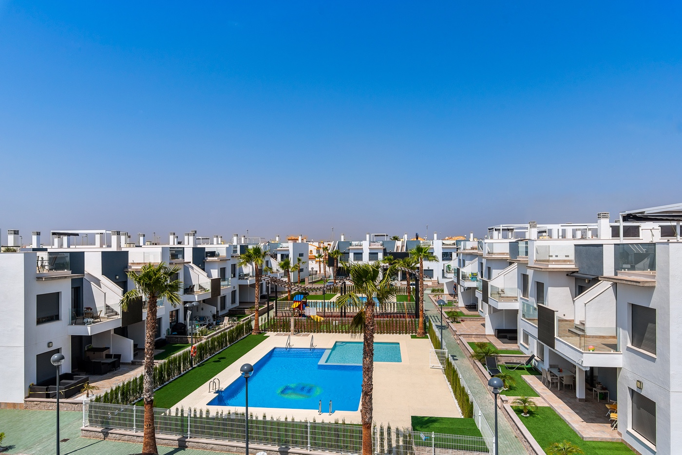 This exclusive development of luxurious apartments is situated within walking distance from the town centre of Pilar de la Horadada, a Spanish town full of character and charm which has a host of amenities including banks, medical centre, supermarkets, bars, shops and restaurants and the stunning beaches are a good walk or a few minutes by car. La Mar resort is a secure gated complex which includes communal pools, children’s play area and secure parking.
