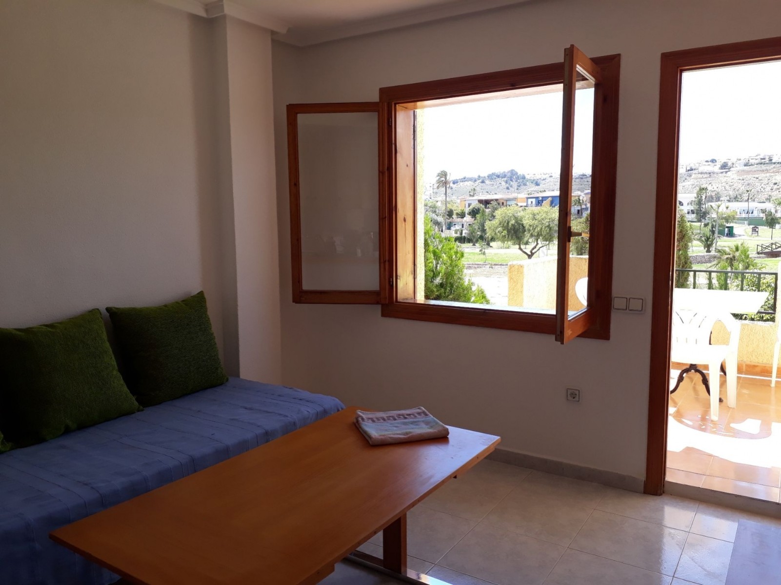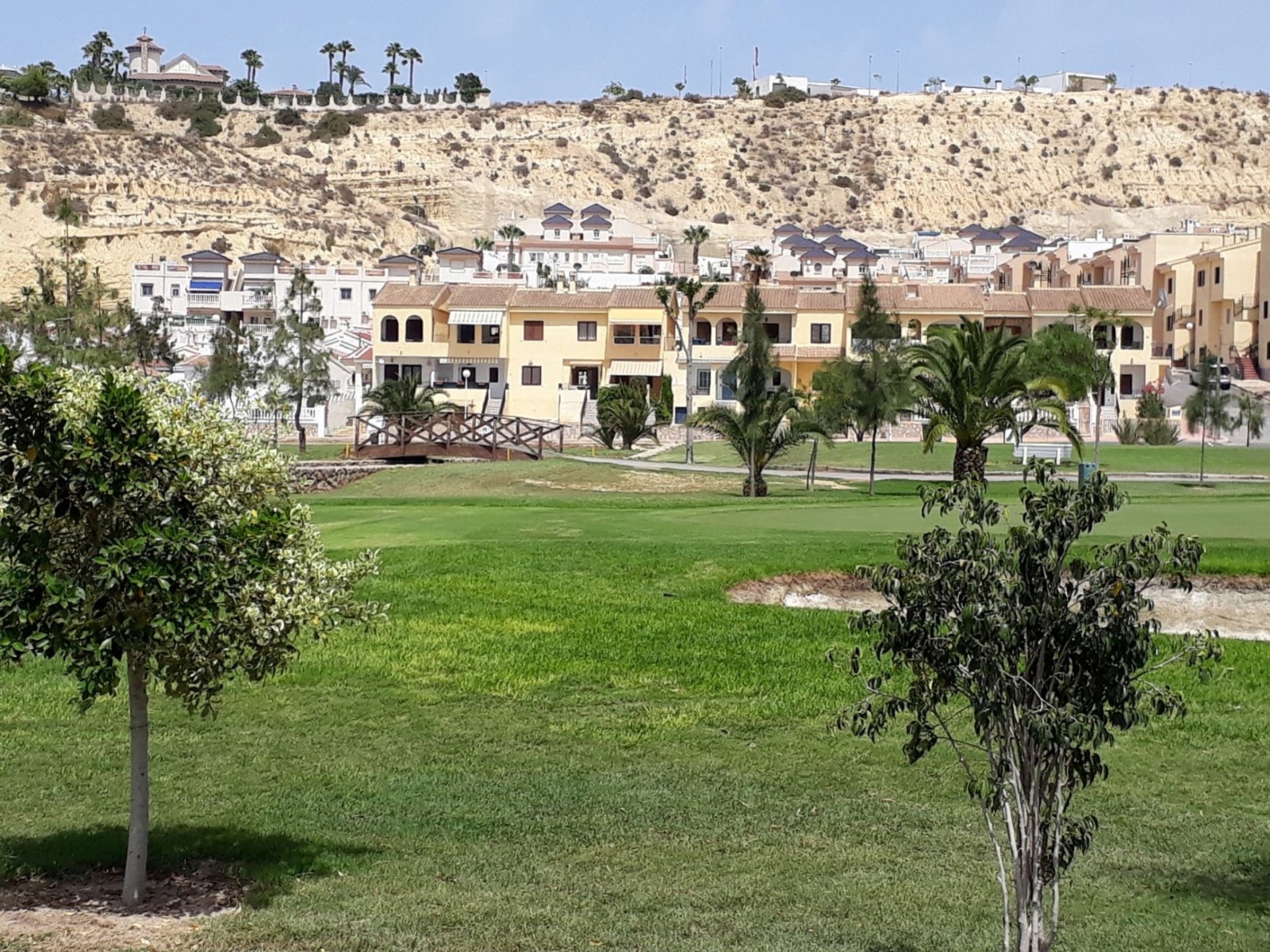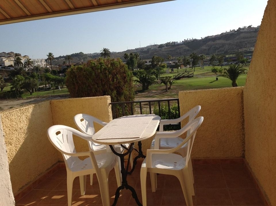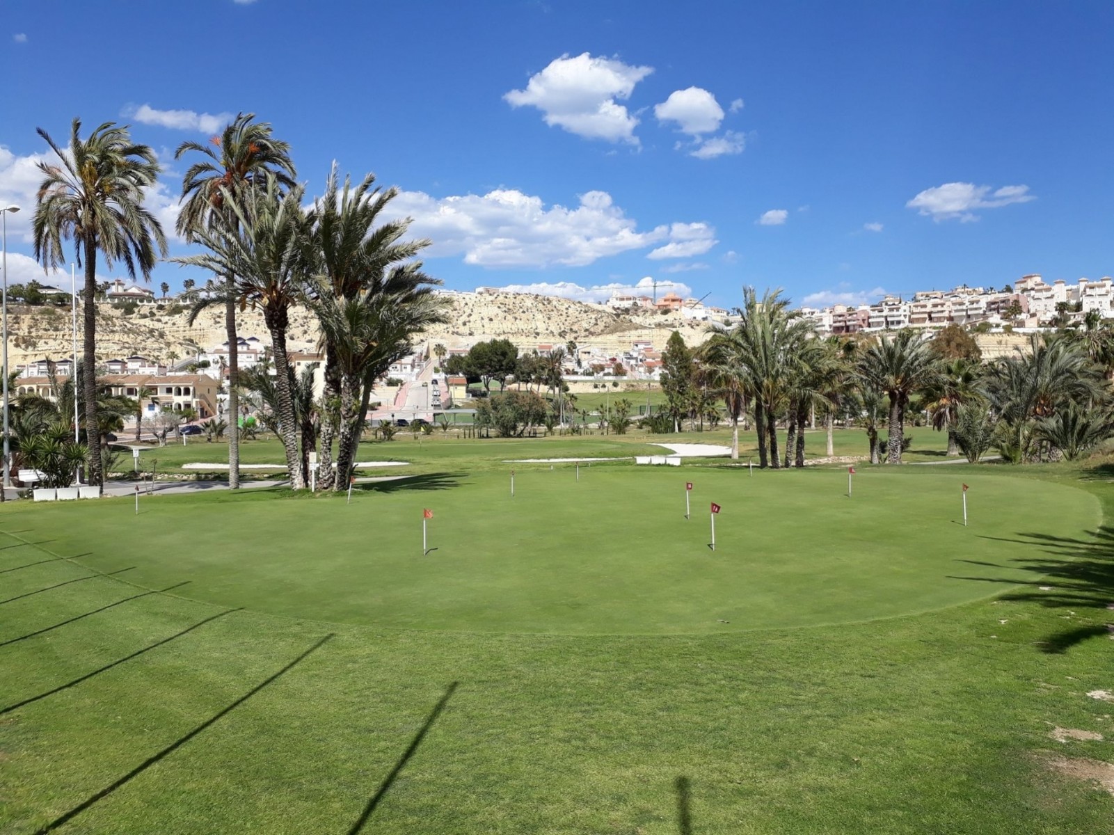 Apartment Bungalow first line to the international golf course, ready to live in. It has 1 bedroom, living room with american kitchen, front yard and terrace with amazing panoramic views to the green fees up to the mountains of crevillente, equipped and furnished, 1 bathroom, cellar, community pool and private parking. Air conditioning, TV, fiber optic. Very qiet location and pleasant area with all the services around it such as restaurants, bars, supermarket, gas station, atm in few meters, 7 kilometers to endless beaches of sunny Costa Blanca, to Alicante 34 kilometer. A hot property in Spain.