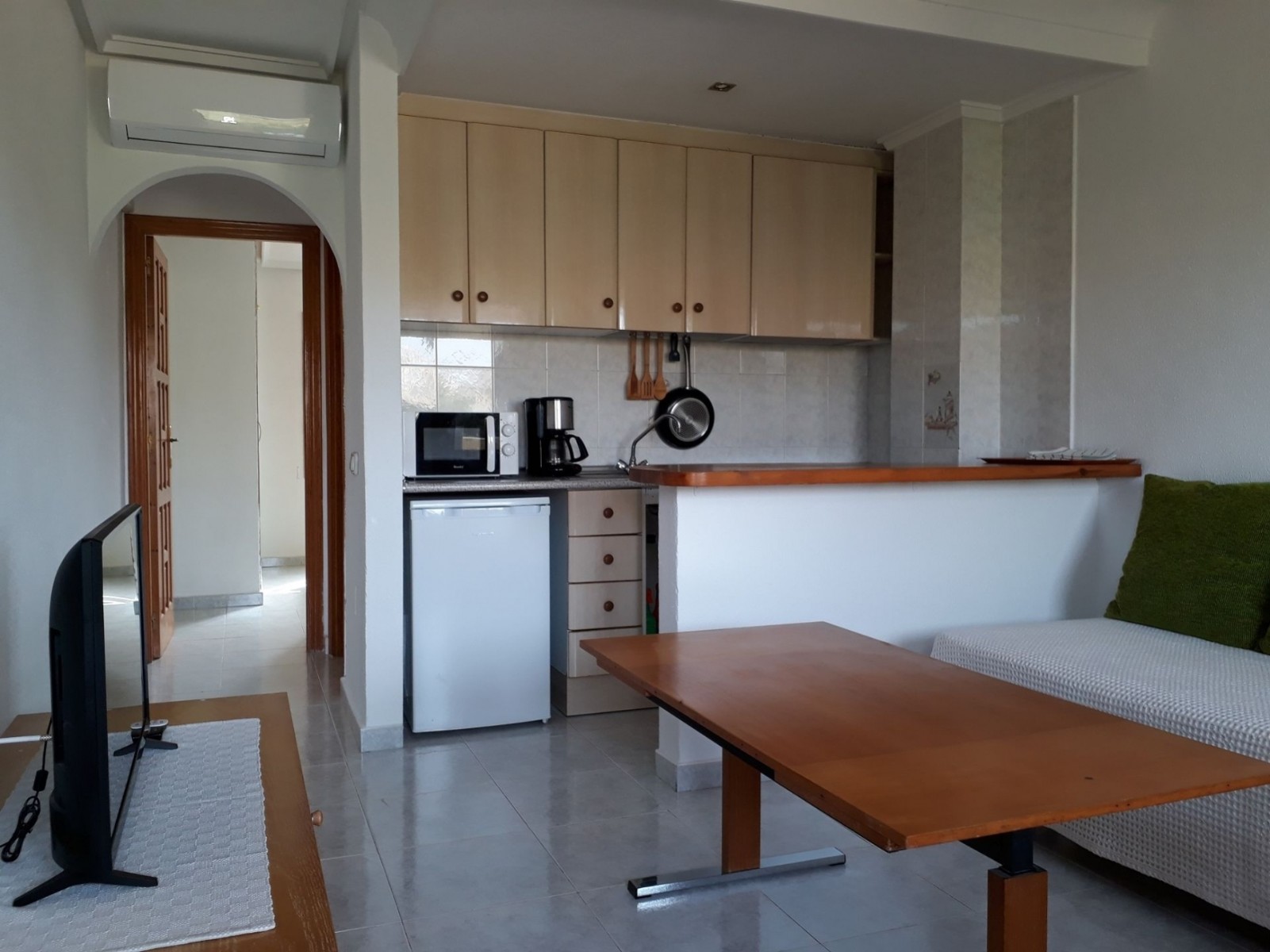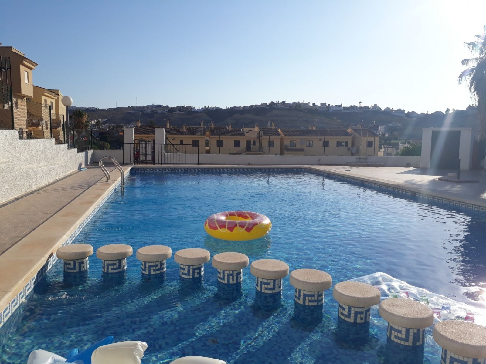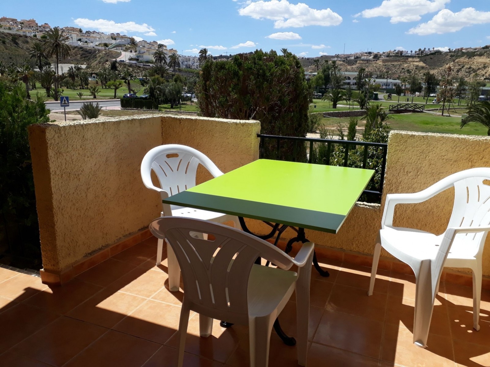 Apartment Bungalow first line to the international golf course, ready to live in. It has 1 bedroom, living room with american kitchen, front yard and terrace with amazing panoramic views to the green fees up to the mountains of crevillente, equipped and furnished, 1 bathroom, cellar, community pool and private parking. Air conditioning, TV, fiber optic. Very qiet location and pleasant area with all the services around it such as restaurants, bars, supermarket, gas station, atm in few meters, 7 kilometers to endless beaches of sunny Costa Blanca, to Alicante 34 kilometer. A hot property in Spain.