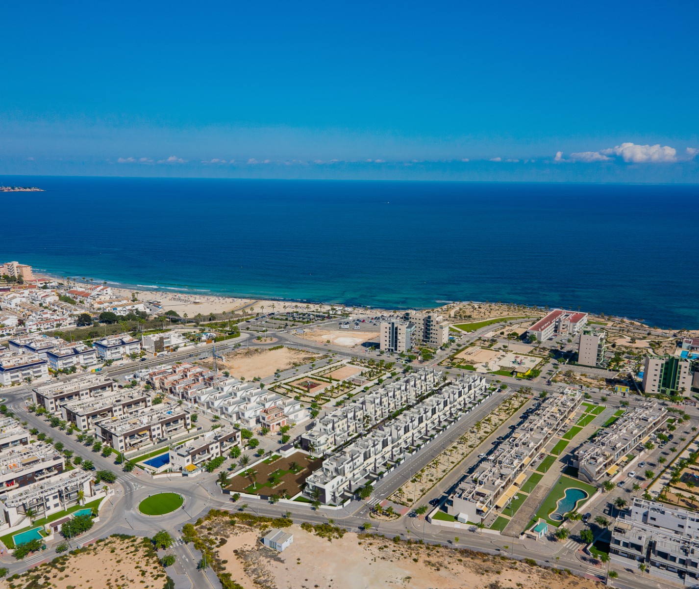 Torre de la Horadada is a lovely beachside resort which has a promenade, several beaches, marina and a host of bars, shops and restaurants. It has many green areas with palm trees and parks to enjoys walks to and from the beach. Just a few minutes drive is the bustling Spanish town of Pilar de la Horadada which has a choice of local amenities.
