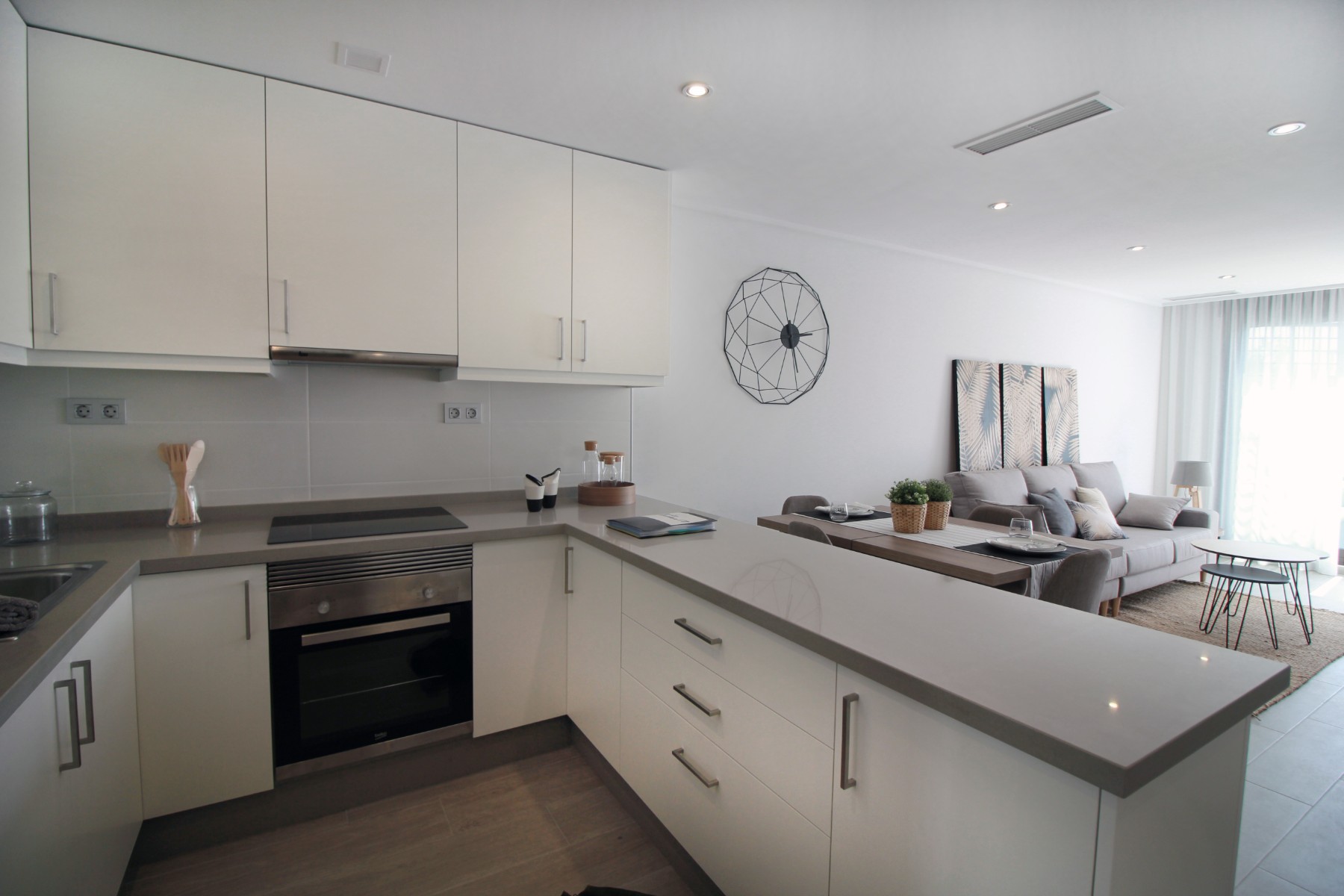 Included with this apartment is indoor and outdoor lighting, under floor heating in the bathroom, kitchen and lounge, kitchen appliances, pre installation of air conditioning, fully fitted bathrooms and electric shutters.