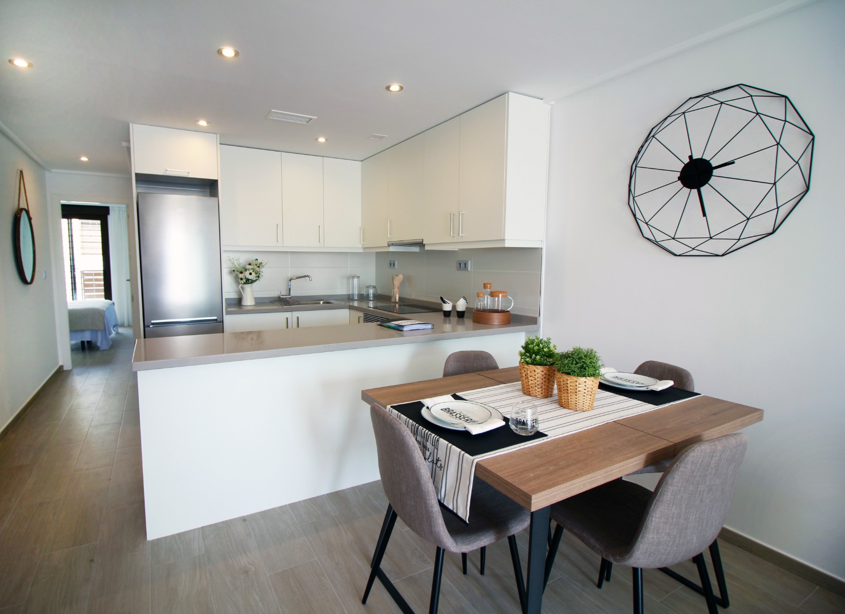 This brand new 3 bedroom, 2 bathroom apartment is located in Torre de la Horadada only 400 metres from the beautiful beach. This property is built to the highest standard and is on a complex with stunning communal gardens with swimming pool, heated jacuzzi, gym and spa and is a short walk from the beach, marina, promenade, new commercial centre and a host of amenities including banks, supermarket, bars, shops and restaurants.