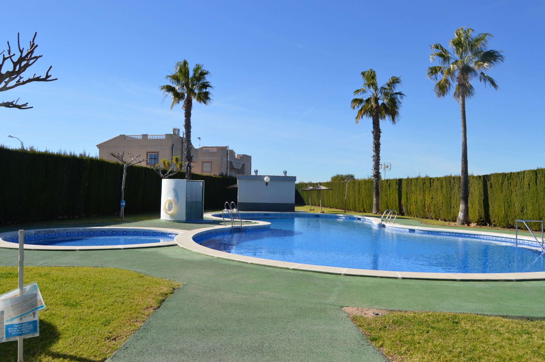 2 bedroom, 1 bathroom ground floor apartment with a tiled garden that is easily maintained. Good location for cafés, shops and near bus routes. Being sold furnished and with a fully equipped kitchen. Very handy rear patio currently used as a utility room and storage area. Air conditioning is already installed.The apartment benefits of a lovely communal pool and it is surrounded by nature areas perfect for walking, cycling or hiking.