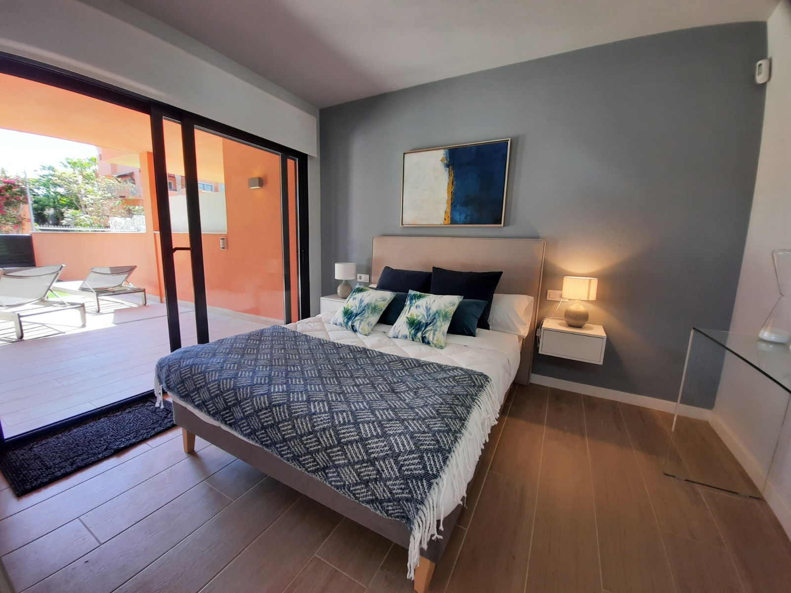 Palapa Golf is a project featuring brand new 2 bedroom, 2 bathroom apartments located in the ever popular Villamartin. These homes are available in ground floor with large garden, 1st/2nd floor with spacious terrace and a penthouse with rooftop solarium. Set in a great location, situated only a few minutes walk from the Villamartin plaza which is open all year round and has a host of restaurants, bars, banks, supermarket and shops. La Zenia boulevard and the blue flag beaches are only a 10 minute drive away.This ground floor apartment has a spacious lounge area with patio doors leading out onto the large sun terrace and garden, an open plan kitchen with fitted appliances including oven, hob, extractor, fridge/freezer, dishwasher, washing machine and microwave, there is a dining area, a master bedroom with fitted wardrobes and en-suite and a further guest bedroom also with fitted wardrobes and a further bathroom.There is a lovely communal area with swimming pool, secure underground parking, electric shutters, kitchen appliances and underfloor heating in the bathrooms are all included in the price.The Villamartin area is very popular with tourists and residents, most of the community consists of Western European expatriates who have settled there in the last 15 years, virtually transforming the original village into a vibrant all year round destination. There are also several golf courses and numerous beaches nearby.