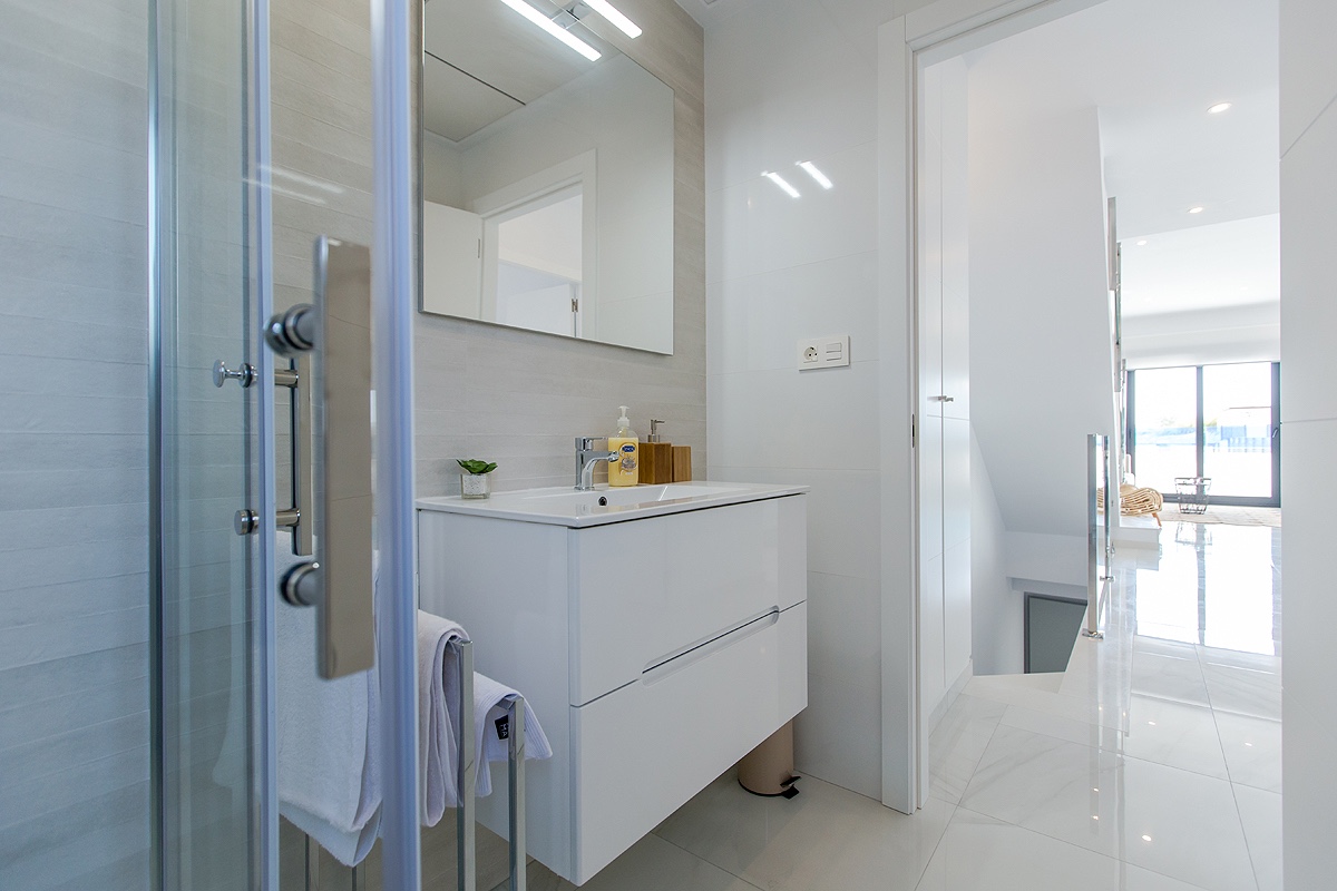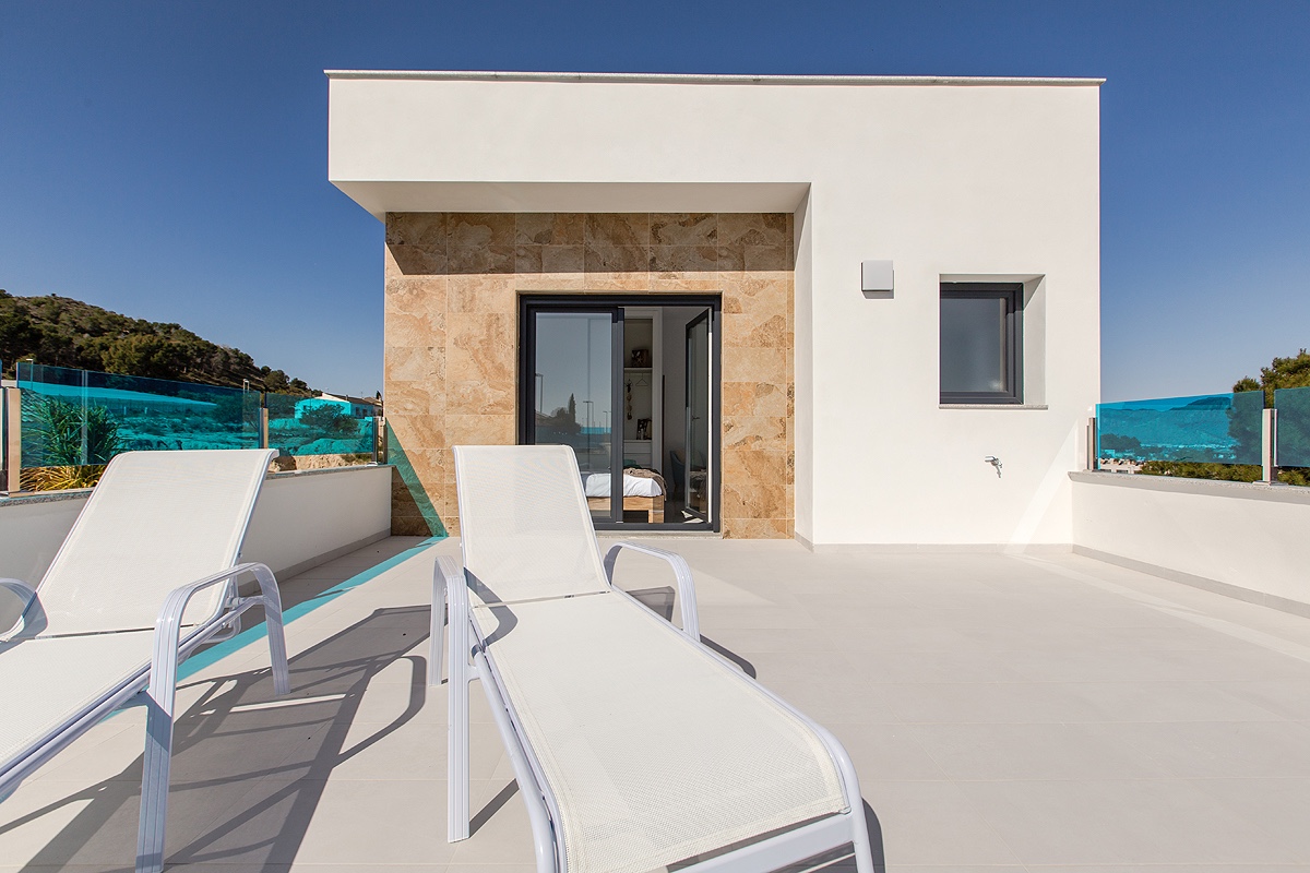This new development of brand new 3 bedroom, 3 bathroom detached villas is located in the Spanish town of Benijofar just a short stroll from the town centre which has a host of amenities including banks, supermarkets, bakeries, bars, shops and restaurants. This stunning villa includes all lighting, modern kitchen with fitted appliances, complete bathrooms with underfloor heating and electric window shutters. There is a choice of plots available and also the option to add a large under build and rooftop solarium.
