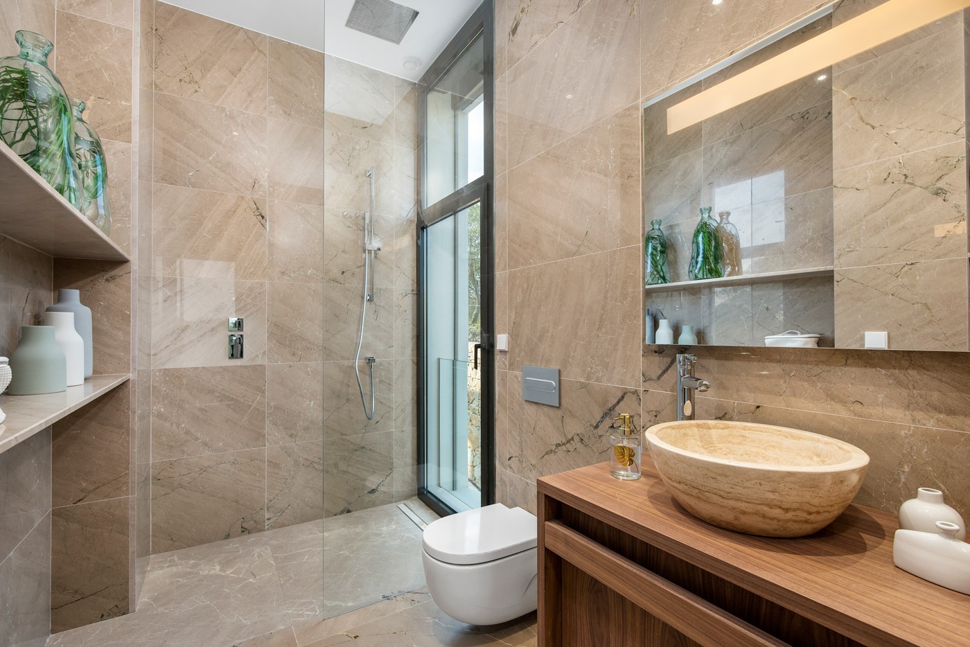 On the first floor there is a master bedroom with walk through wardrobes and en-suite, two further double bedrooms with fitted wardrobes and a guest bathroom. Each bedroom has access to the upper sun terrace which enjoys beautiful elevated panoramic views.