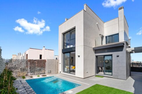 The villa is built to the highest standard and includes an electric car gate, pre-installed vented hot/cold air conditioning, under floor heating in the bathrooms, fitted kitchen including appliances, electric shutters, video intercom and there is the option to add a private pool and rooftop solarium.