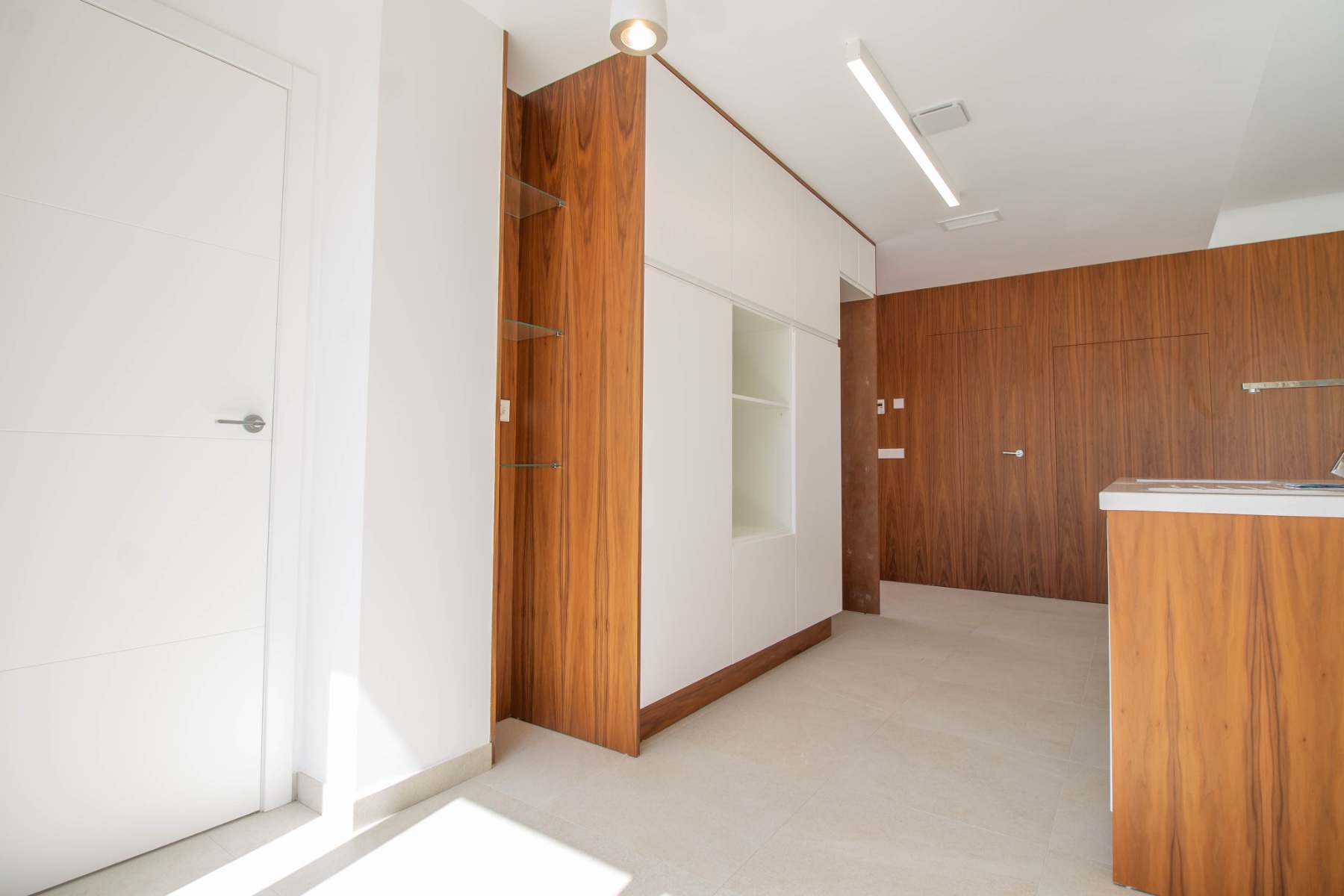 On the ground floor of this villa there is an large open plan lounge with patio doors which lead out into the garden with swimming pool, dining area, modern kitchen with adjoining utility room, a double bedroom with fitted wardrobes and en- suite and a guest bathroom on this level. There is also an outside storeroom at the rear of the villa.