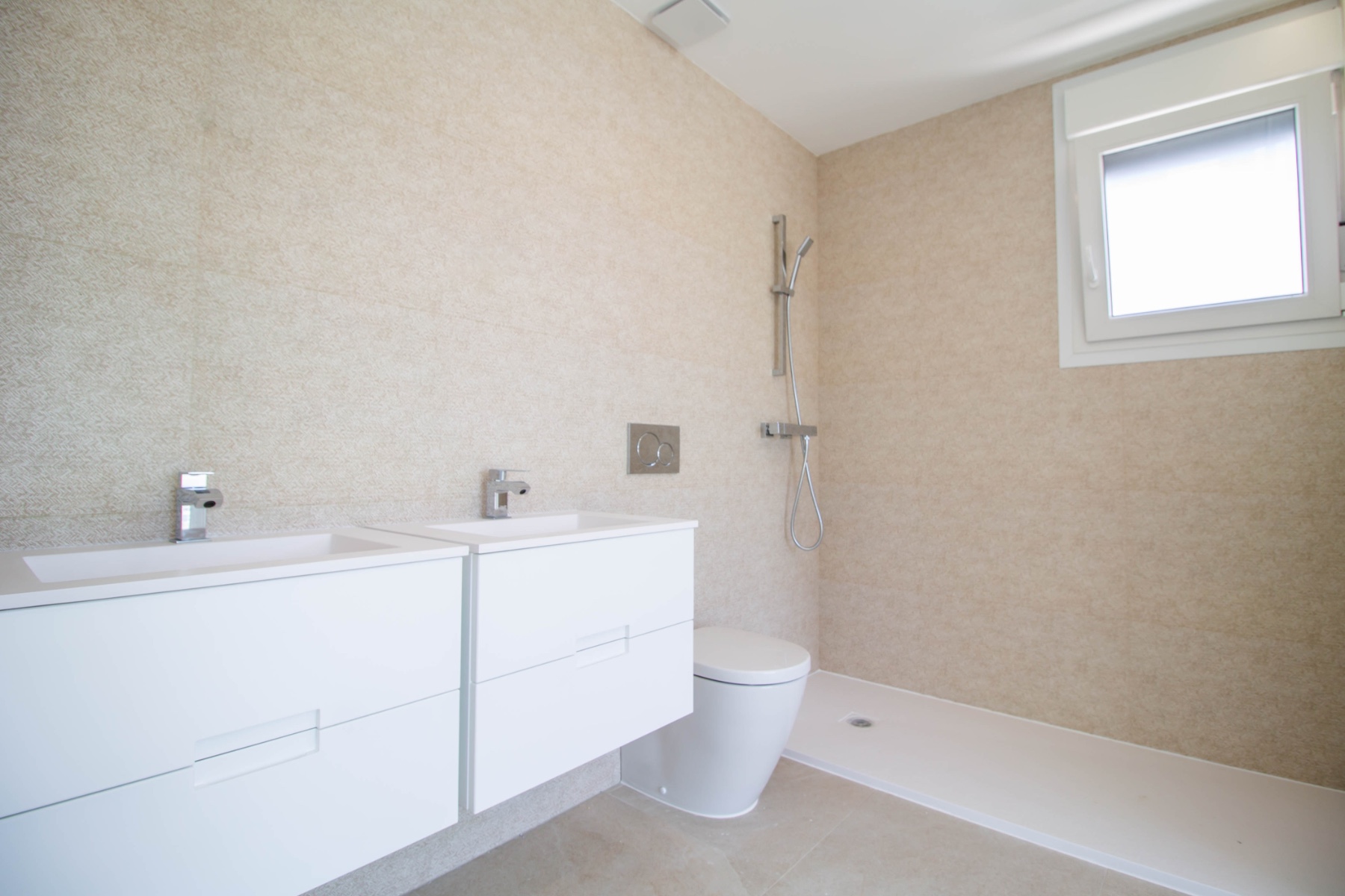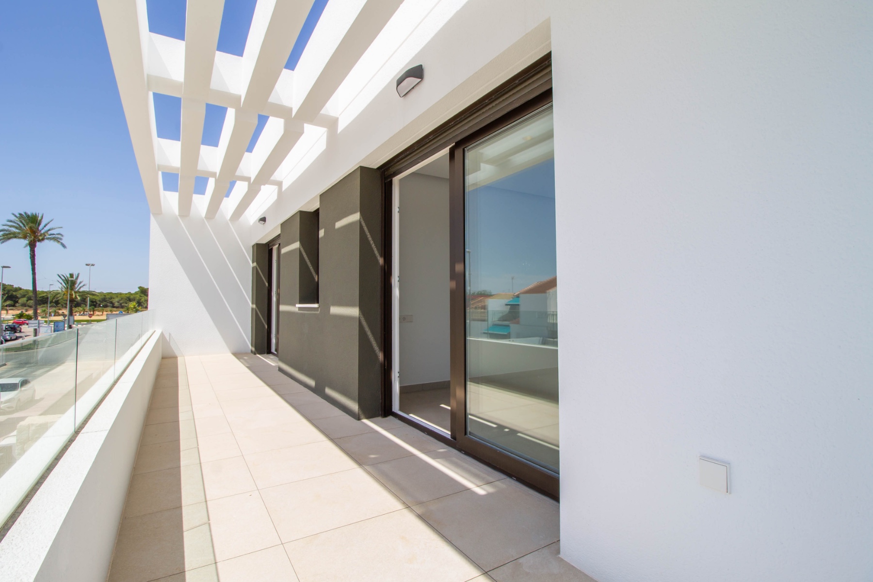 The first floor comprises of two further bedrooms, both with fitted wardrobes and en-suite bathrooms. Each bedroom has patio doors which lead out onto the sun terrace. There is a staircase which leads up to a rooftop solarium where you can enjoy sea views and all day sun.