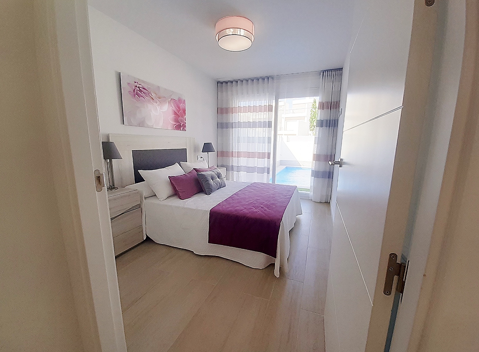 This stunning villa comprises of a spacious lounge/diner with full width patio doors which lead out into the garden with private pool, an open plan kitchen with fitted appliances including oven, hob, extractor, integrated fridge/freezer and dishwasher, washing machine and microwave, a double bedroom with fitted wardrobes, storage room and a guest bathroom.