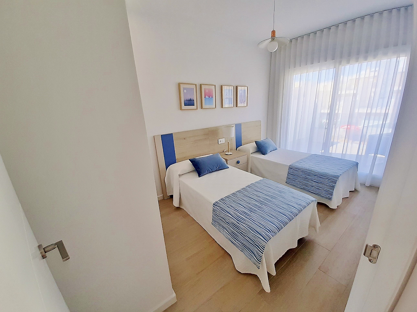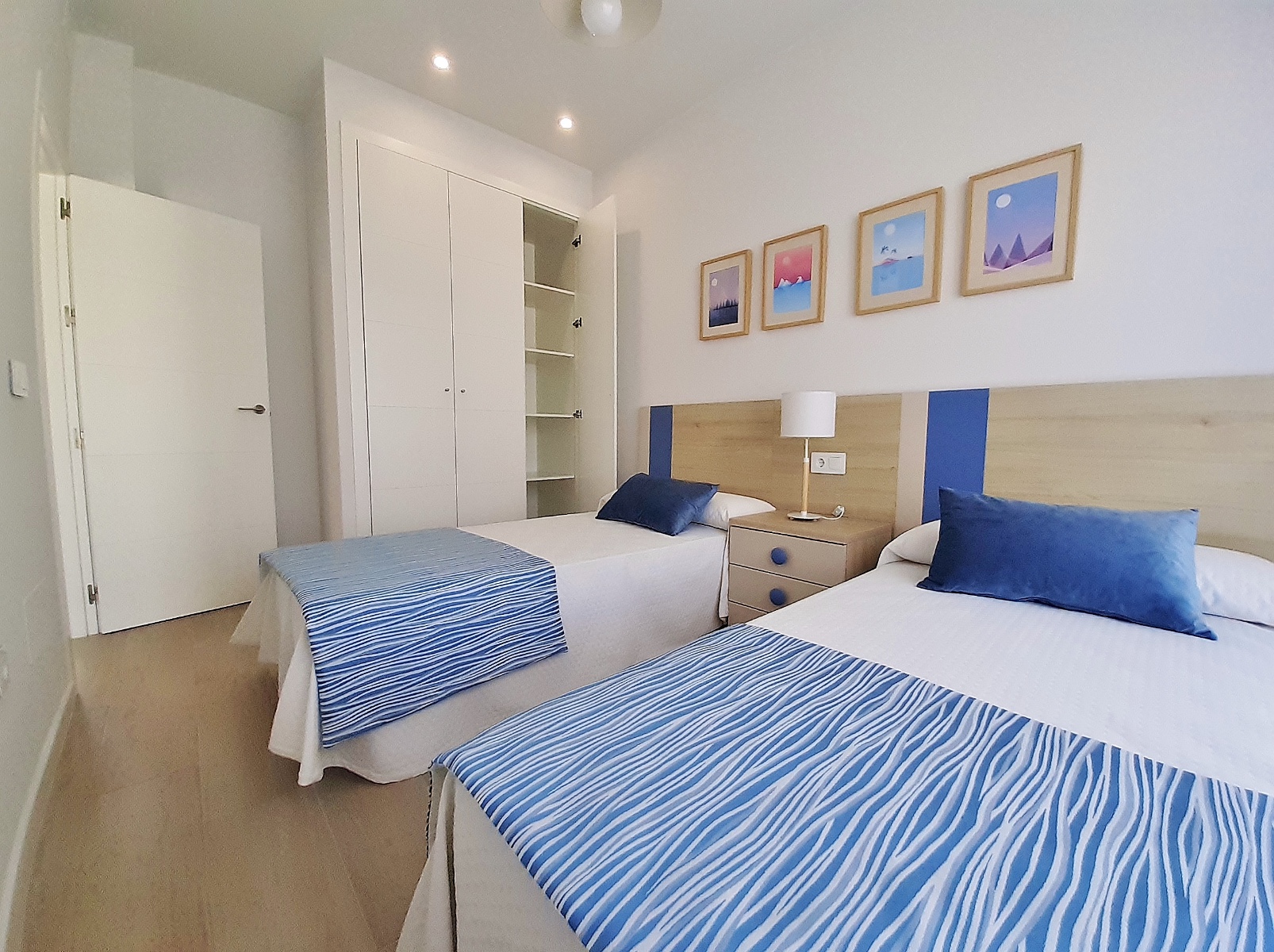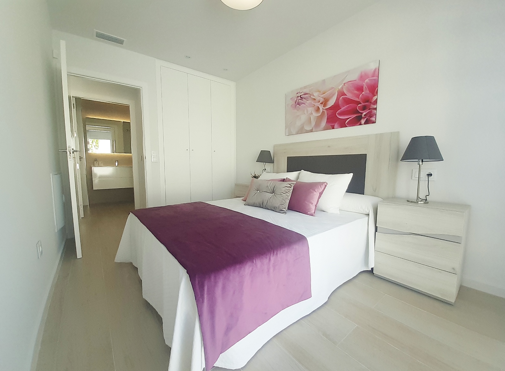 On the first floor there is a master bedroom with walk in wardrobe and private upper sun terrace, another double bedroom with fitted wardrobes and a large bathroom.