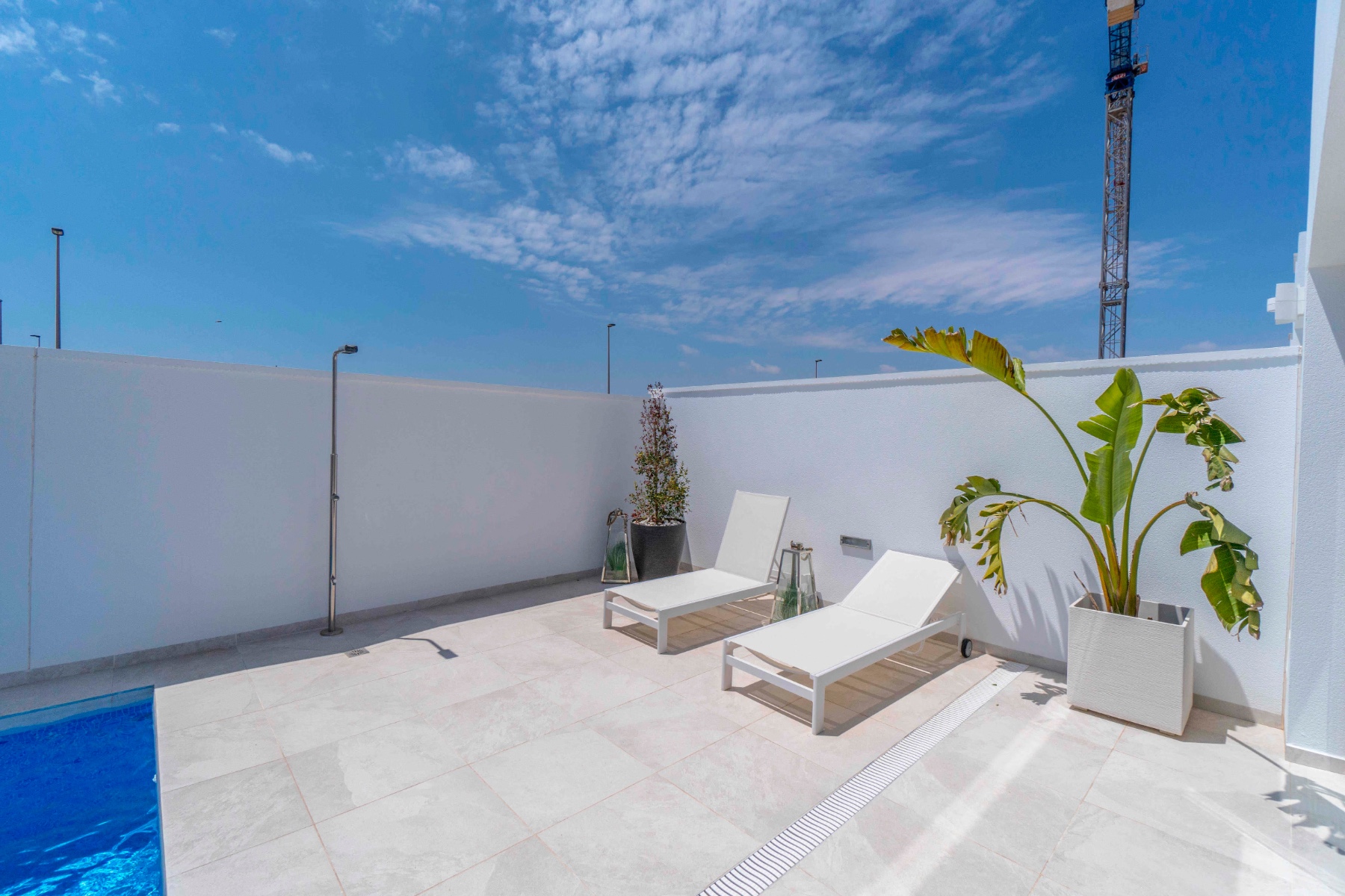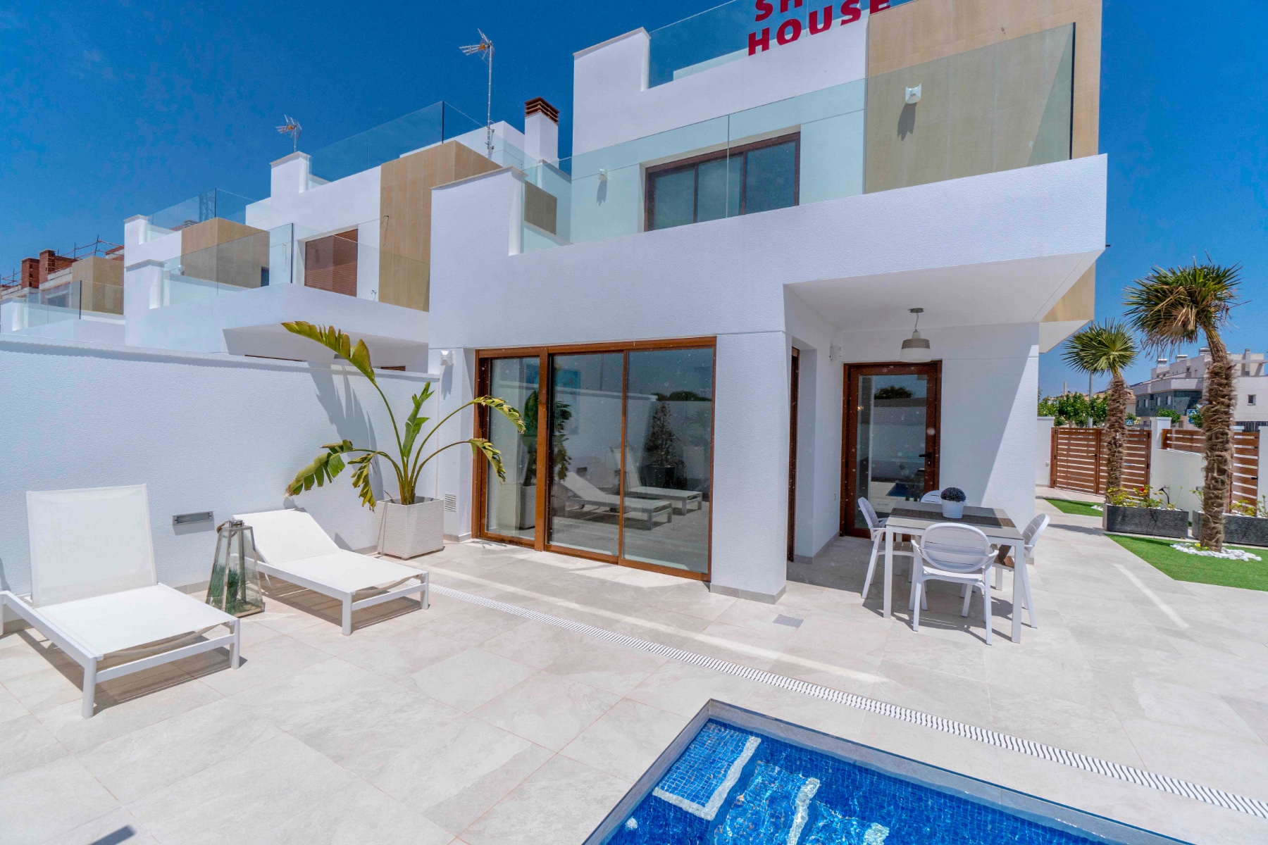 This brand new 3 bedroom, 3 bathroom detached villa is located in Torre de la Horadada only 200 metres from the beautiful beach. This villa is built to the highest standard and comes with a rooftop solarium, kitchen appliances, all lighting, private pool with waterfall and is ready to move into.