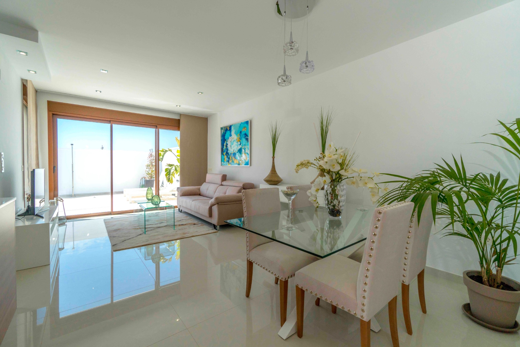 Torre de la Horadada is a lovely beachside resort which has a promenade, several beaches, marina and a host of bars, shops and restaurants. It has many green areas with palm trees and parks to enjoys walks to and from the beach. Just a few minutes drive is the bustling Spanish town of Pilar de la Horadada which has a choice of local amenities.