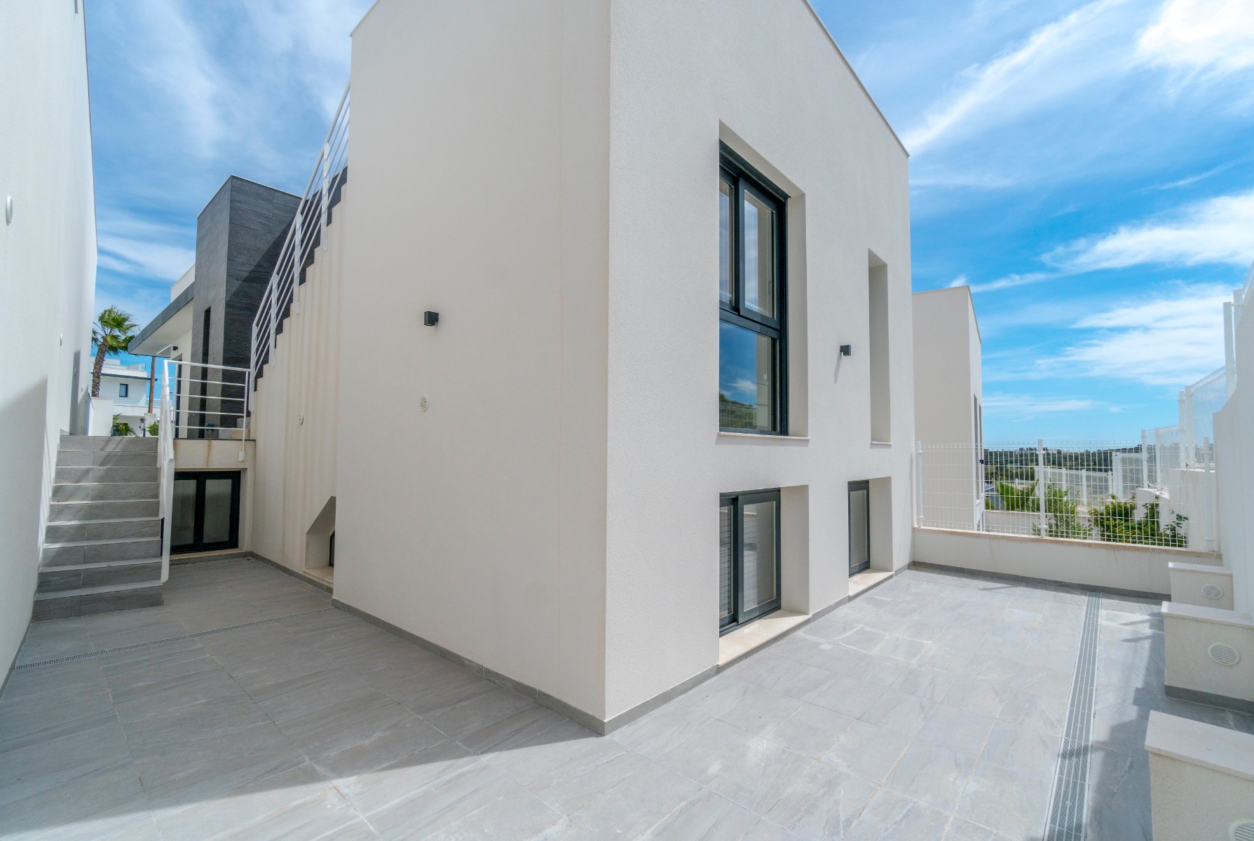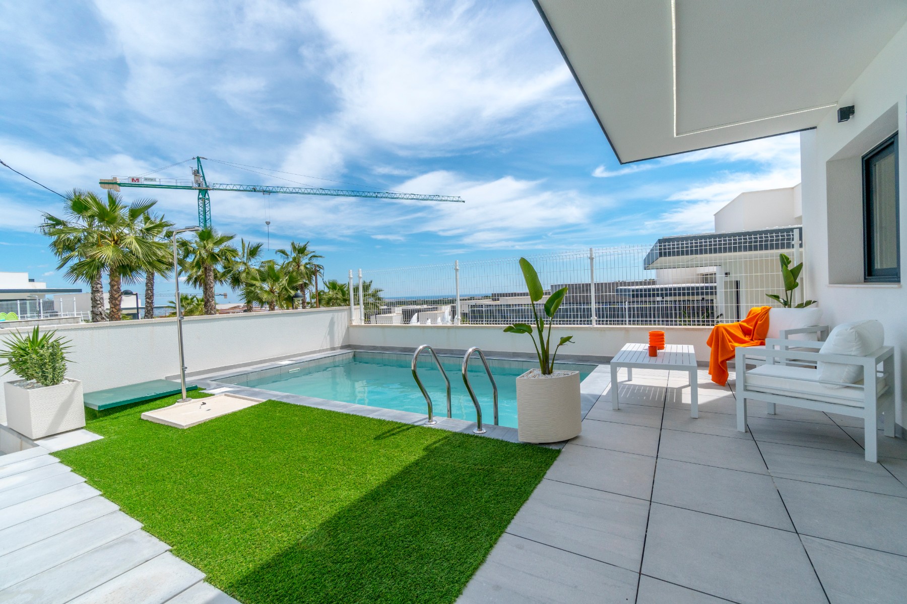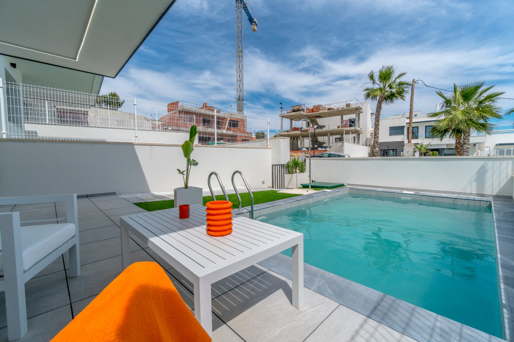 This modern new 4 bedroom, 4 bathroom detached villa with private pool is situated between San Miguel de Salinas and Villamartin and enjoy stunning open countryside and sea views. The development is in a quiet residential area and only a short drive from restaurants, bars and shops and a short drive to La Zenia boulevard and the blue flag beaches.
