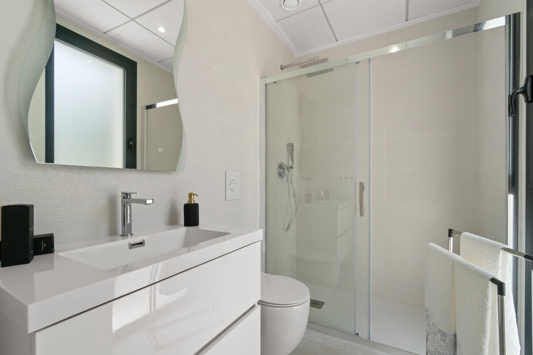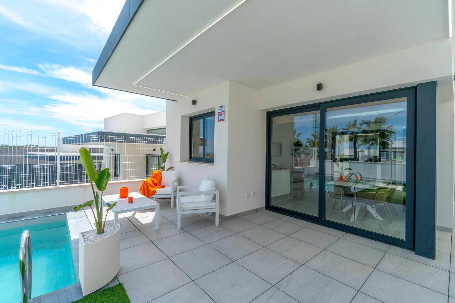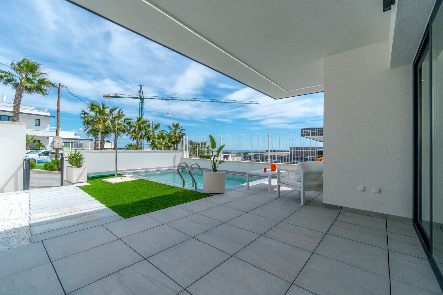 This modern new 4 bedroom, 4 bathroom detached villa with private pool is situated between San Miguel de Salinas and Villamartin and enjoy stunning open countryside and sea views. The development is in a quiet residential area and only a short drive from restaurants, bars and shops and a short drive to La Zenia boulevard and the blue flag beaches.