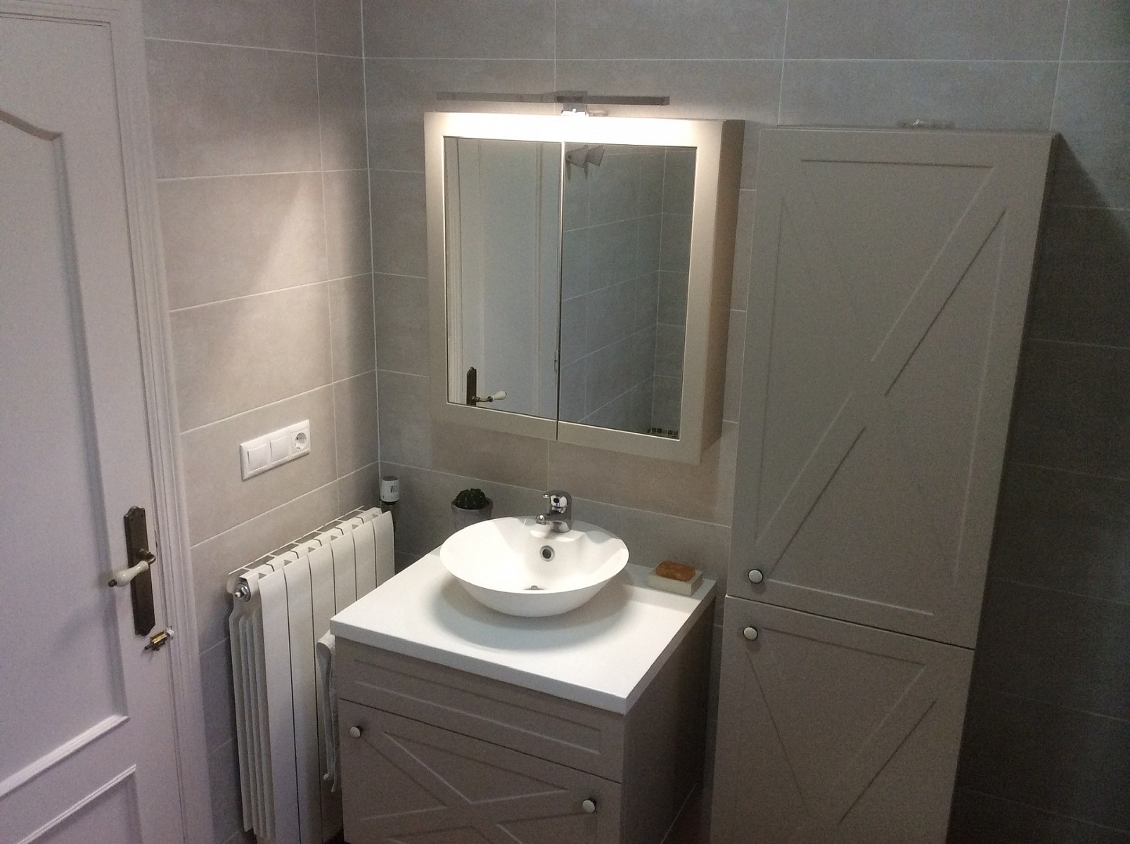 Spacious garage with floor tiles, lighting, enough space for 2 vehicles, 1 automatic gate, heating room with boiler on heating oil, sink cold / hot water and storage space, total area of 30 m2.