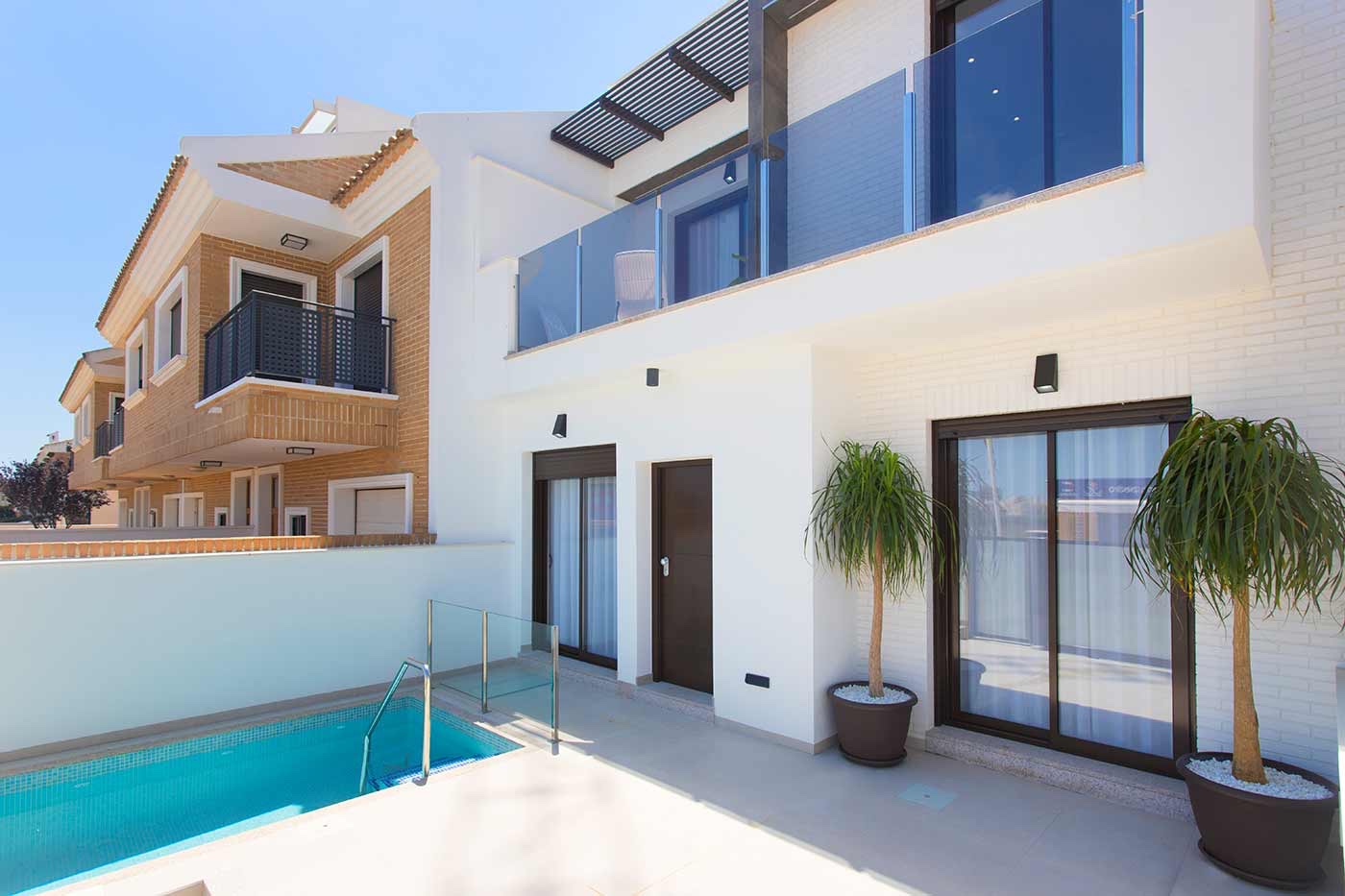 This modern development of 3 bedroom, 3 bathroom luxury townhouses with private pool is situated in San Pedro del Pinatar only a short walk from the town centre which has a host of amenities including banks, supermarkets, shops, bars and restaurants. The local beaches and the Dos Mares shopping mall are a few minutes drive away.