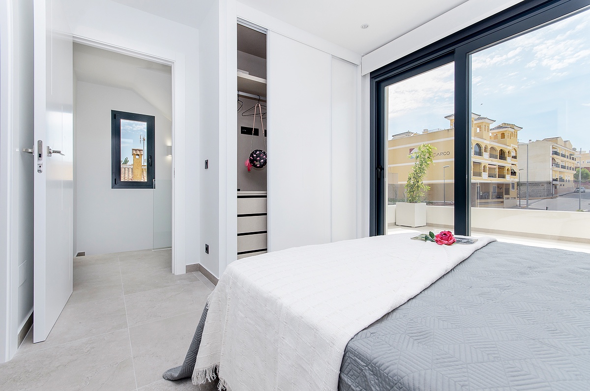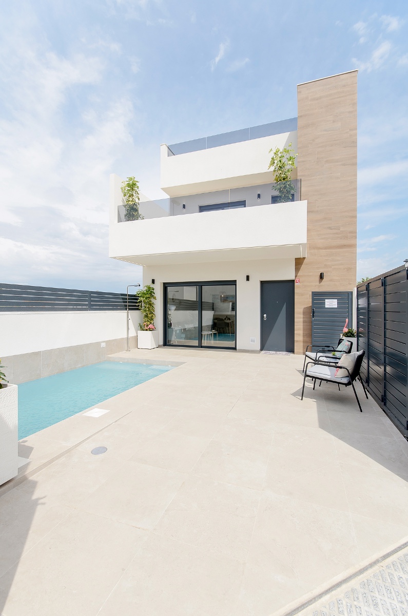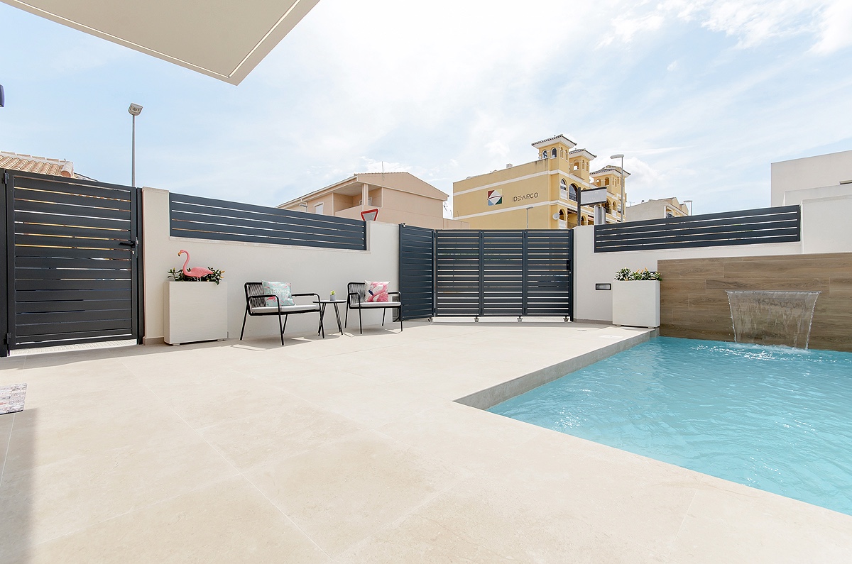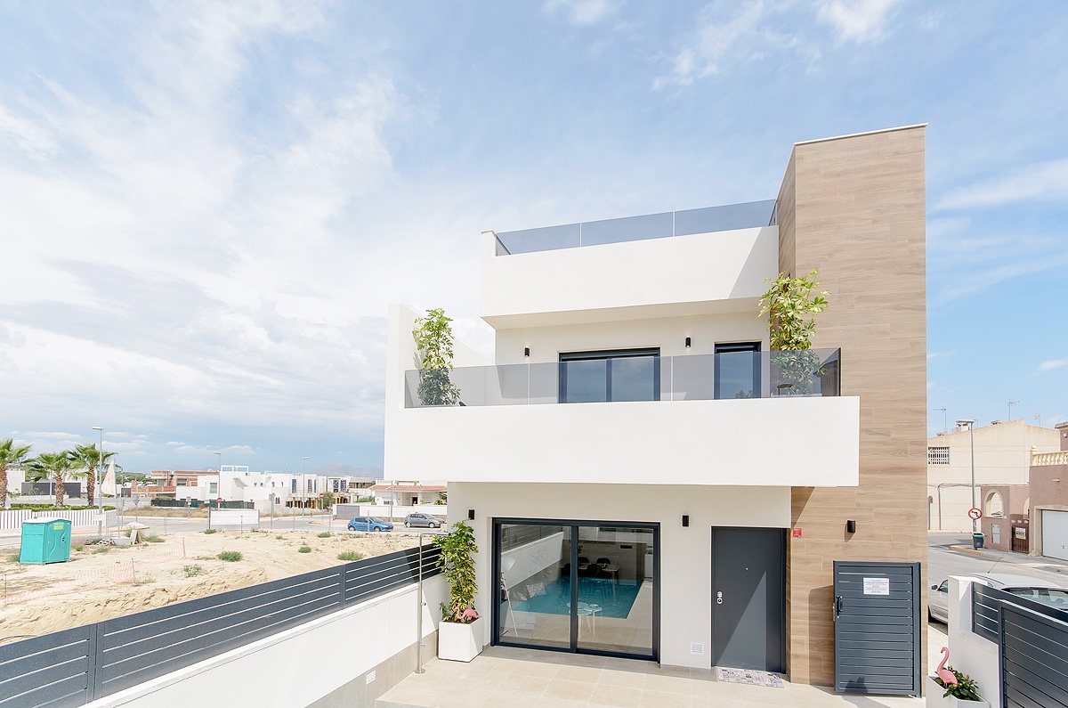 Costa Flamencos Benijofar is a new development of 3 bedroom, 2 bathroom villas on a small plot of 12 properties situated a few minutes walk from the Spanish town of Benijofar which has a host of bars, shops and restaurants. Located in the heart of the charming Spanish town where all the amenities and services are on the doorstep. Benijofar is well connected to the coastal road and Guardamar beaches are less than a ten minute drive away.There is a choice of plots and each villa includes private pool with bench jacuzzi, hot/cold ducted air conditioning, kitchen appliances, interior and exterior lighting, electric shutters throughout and the option to add an under build and a private rooftop solarium.The ground floor of this property comprises of a spacious lounge with patio doors which lead out into the garden with private swimming pool and bench jacuzzi, fully fitted modern kitchen with appliances including oven, hob, extractor, fridge/freezer, washing machine, dishwasher and microwave, dining area, double bedroom with fitted wardrobes and private rear terrace, guest bathroom complete with shower screen and underfloor heating and a further guest toilet.An internal staircase leads down to a converted under build which includes an open plan lounge, a double bedroom with fitted wardrobes and a fully fitted bathroom.The first floor consists of a double bedroom with fitted wardrobes and access to a large 20 m² private terrace, a further double bedroom with fitted wardrobes and a guest bathroom complete with shower screen.Benijofar is a bustling Spanish town full of character with a wide range of amenities including banks, shops, bars and restaurants. Quesada is just a few minutes drive away and the blue flag beaches are a short fifteen minute drive.