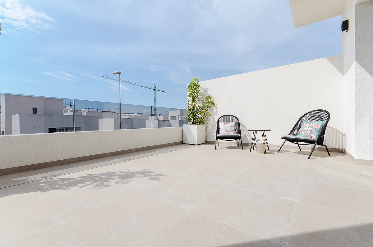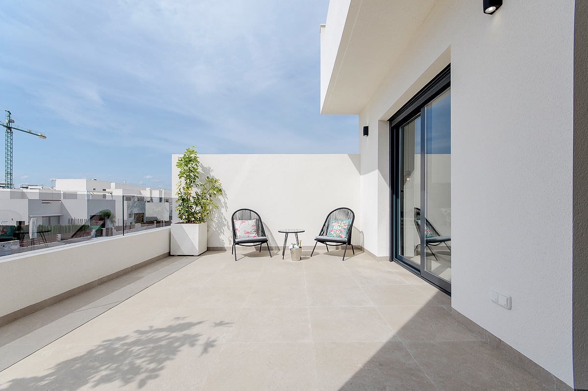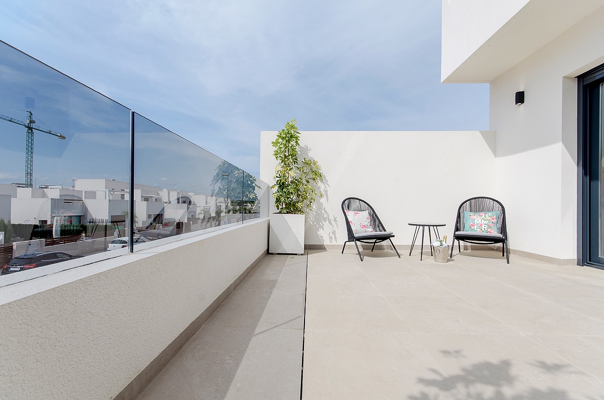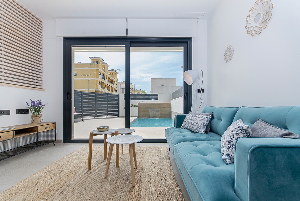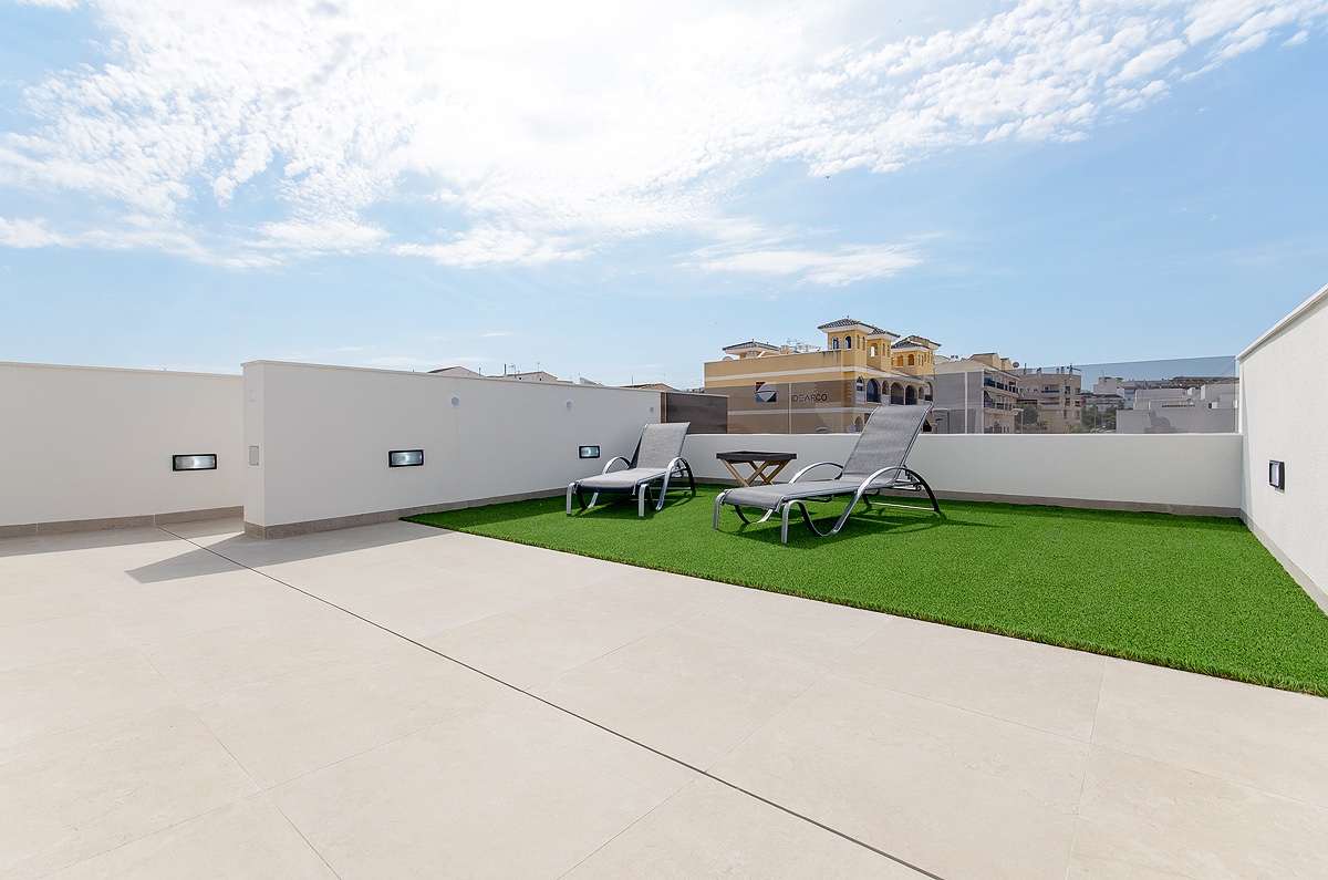 Costa Flamencos Benijofar is a new development of 3 bedroom, 2 bathroom villas on a small plot of 12 properties situated a few minutes walk from the Spanish town of Benijofar which has a host of bars, shops and restaurants. Located in the heart of the charming Spanish town where all the amenities and services are on the doorstep. Benijofar is well connected to the coastal road and Guardamar beaches are less than a ten minute drive away.There is a choice of plots and each villa includes private pool with bench jacuzzi, hot/cold ducted air conditioning, kitchen appliances, interior and exterior lighting, electric shutters throughout and the option to add an under build and a private rooftop solarium.The ground floor of this property comprises of a spacious lounge with patio doors which lead out into the garden with private swimming pool and bench jacuzzi, fully fitted modern kitchen with appliances including oven, hob, extractor, fridge/freezer, washing machine, dishwasher and microwave, dining area, double bedroom with fitted wardrobes and private rear terrace, guest bathroom complete with shower screen and underfloor heating and a further guest toilet.An internal staircase leads down to a converted under build which includes an open plan lounge, a double bedroom with fitted wardrobes and a fully fitted bathroom.The first floor consists of a double bedroom with fitted wardrobes and access to a large 20 m² private terrace, a further double bedroom with fitted wardrobes and a guest bathroom complete with shower screen.Benijofar is a bustling Spanish town full of character with a wide range of amenities including banks, shops, bars and restaurants. Quesada is just a few minutes drive away and the blue flag beaches are a short fifteen minute drive.