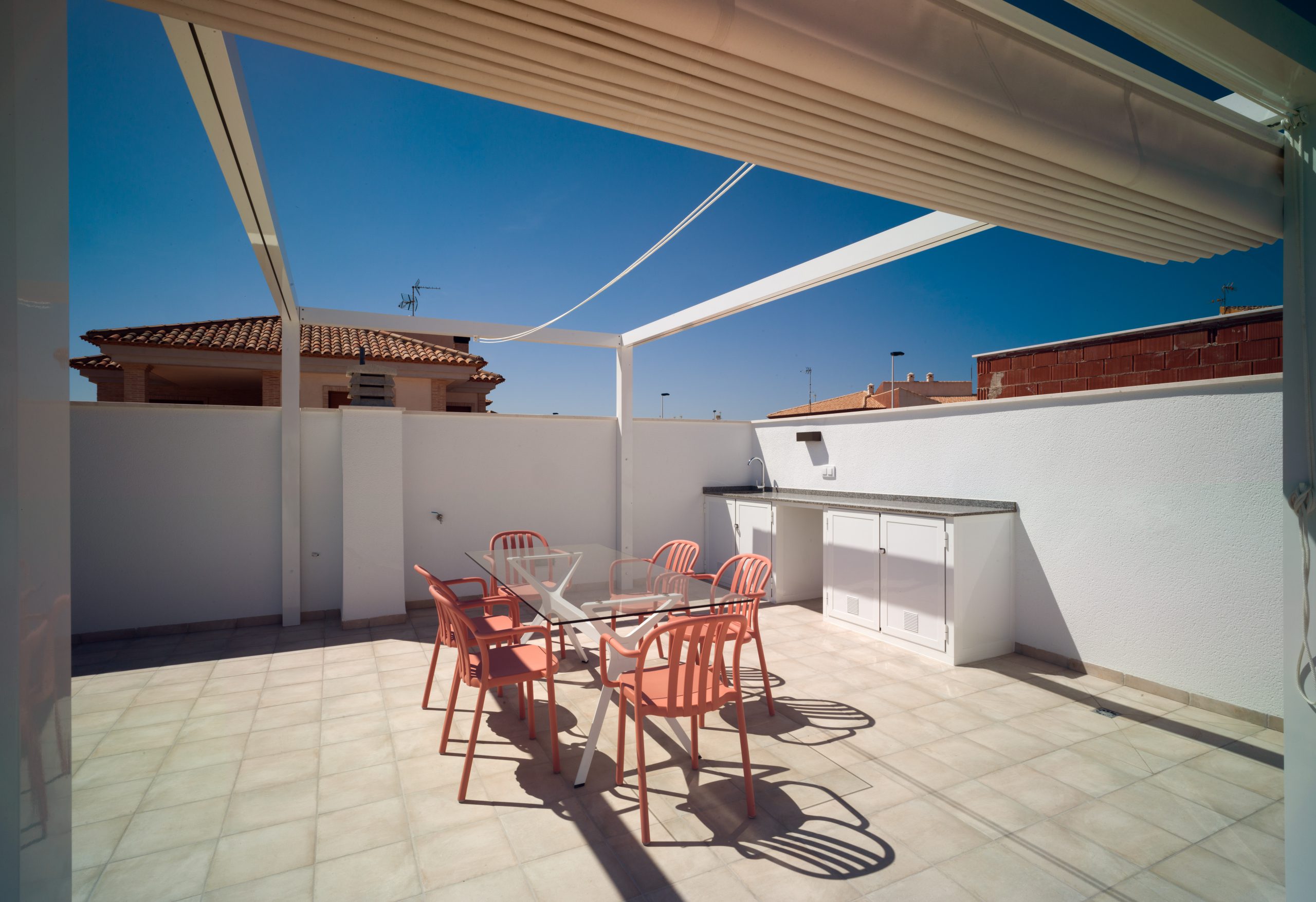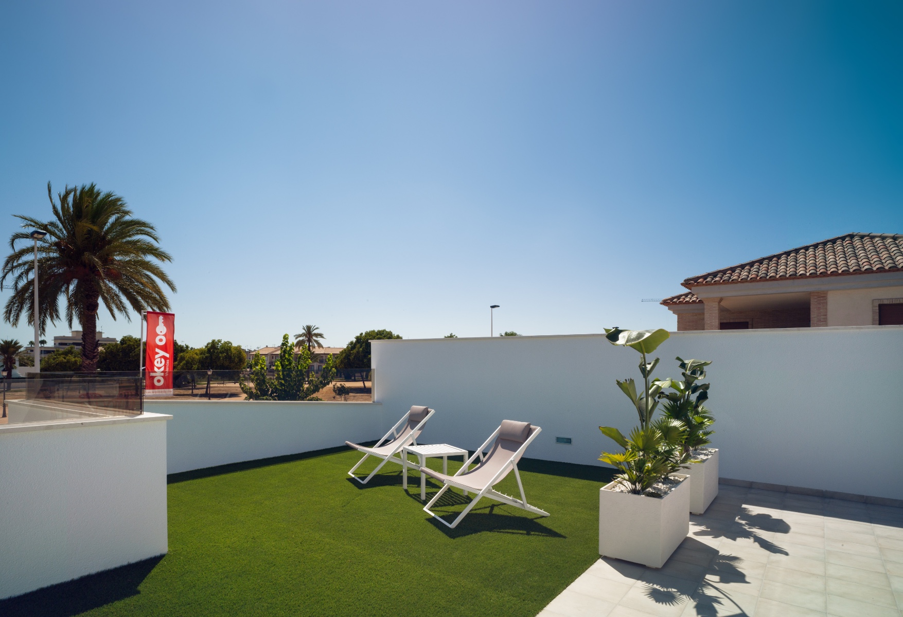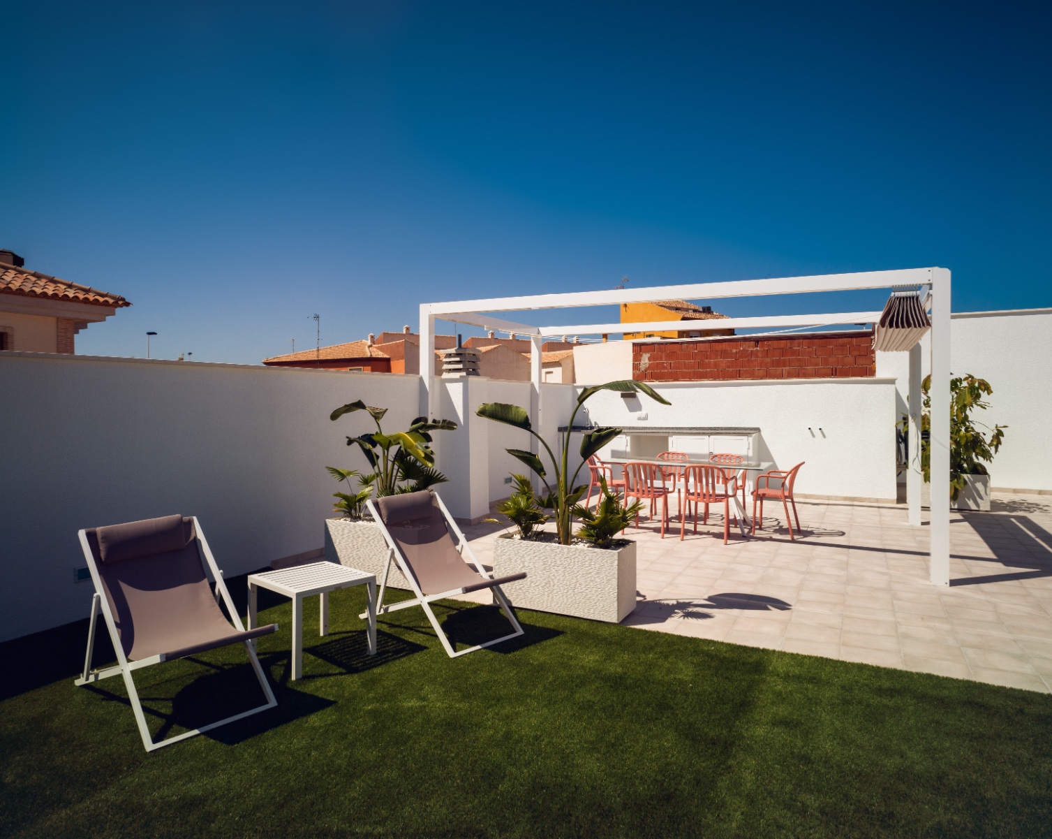 This luxurious modern development of 6 properties consists 3 bedroom modern villas which have a large garden and private rooftop solarium. There are lovely communal gardens with a swimming pool and off road parking is also included in the price. This stunning development is located in San Pedro del Pinatar close to amenities, the Mar Menor beach and the Dos Mares shopping centre.
