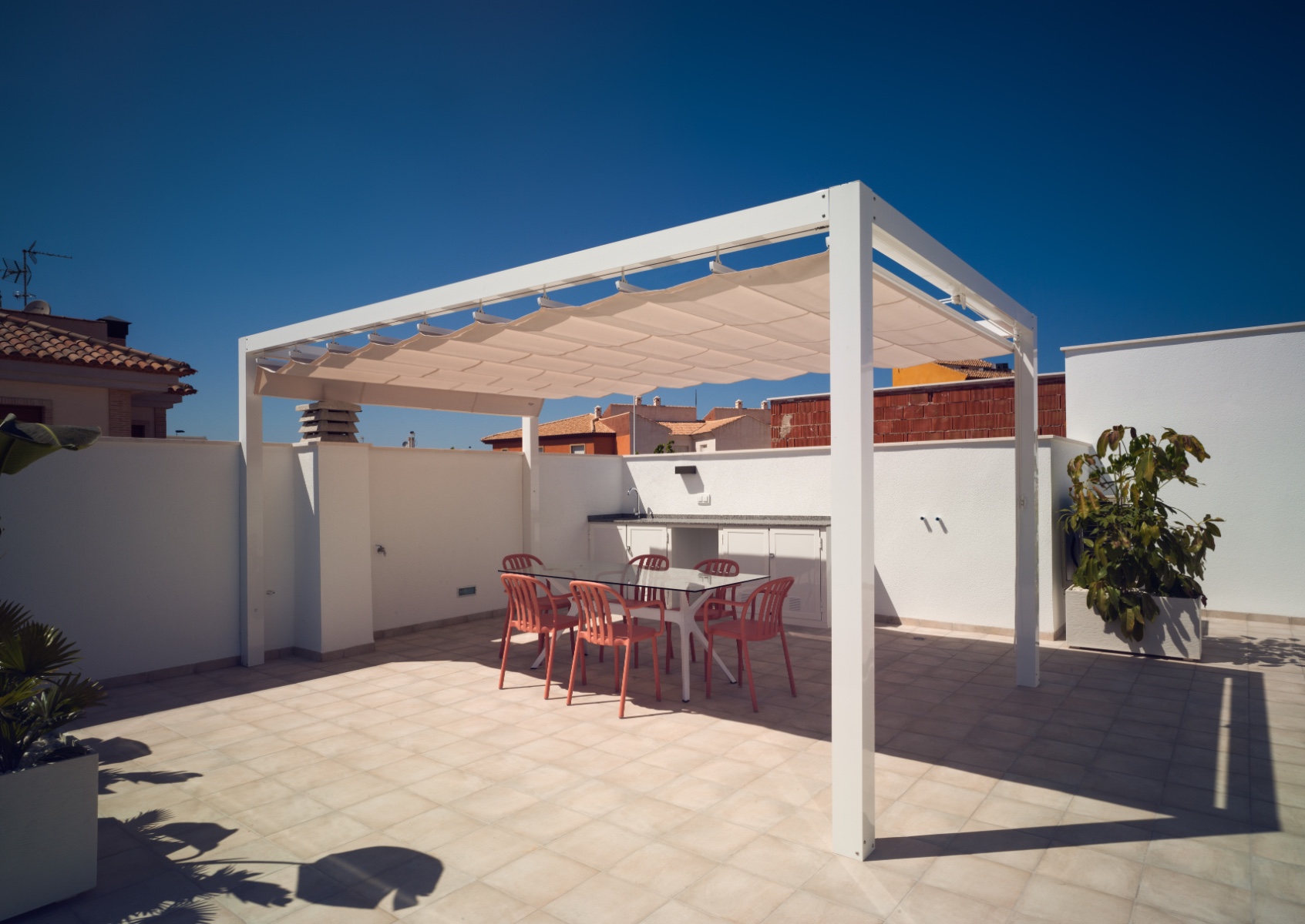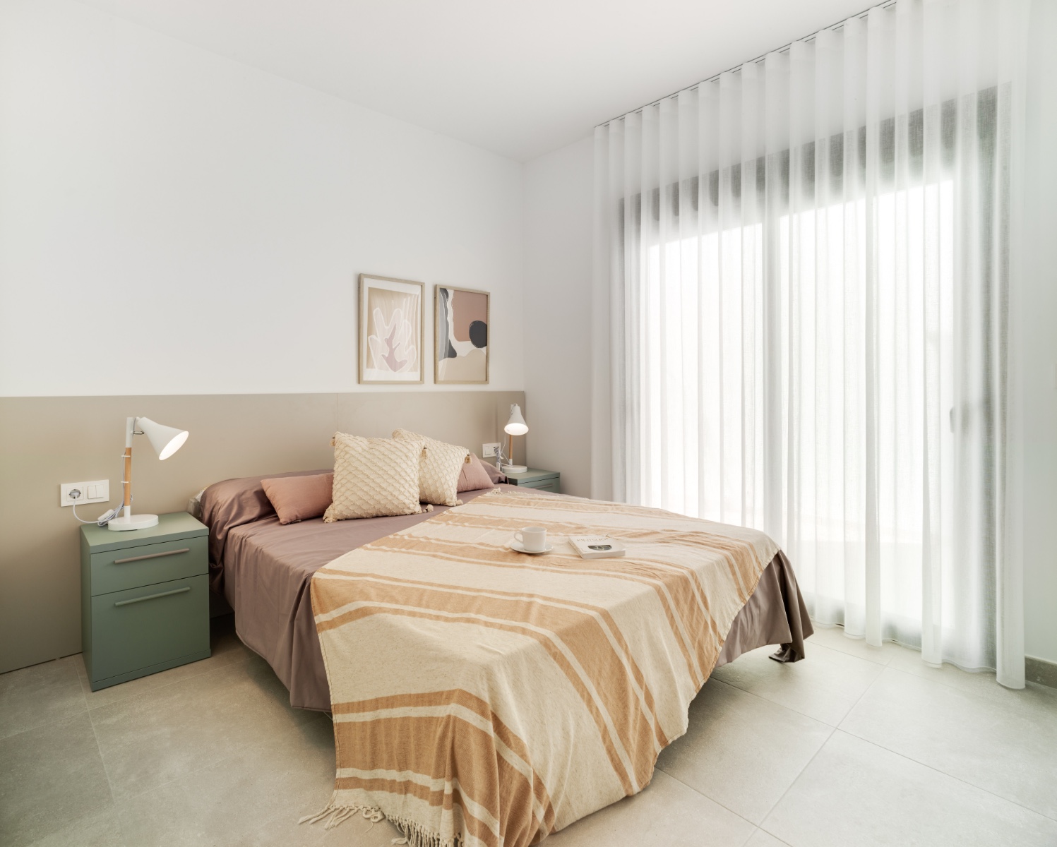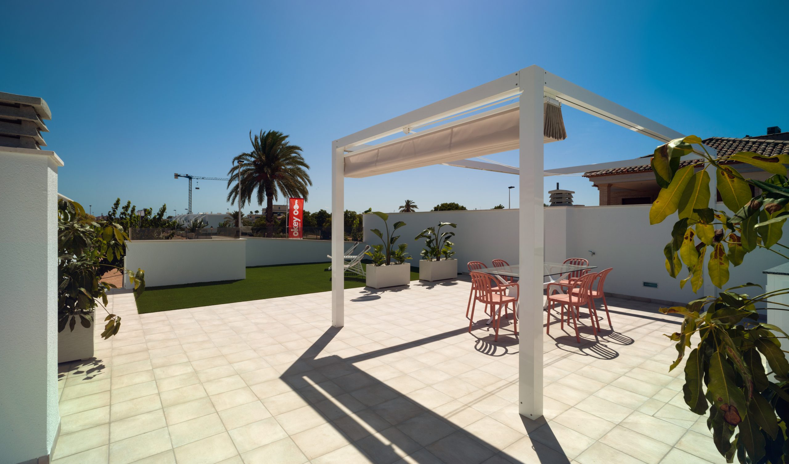 This luxurious modern development of 6 properties consists 3 bedroom modern villas which have a large garden and private rooftop solarium. There are lovely communal gardens with a swimming pool and off road parking is also included in the price. This stunning development is located in San Pedro del Pinatar close to amenities, the Mar Menor beach and the Dos Mares shopping centre.